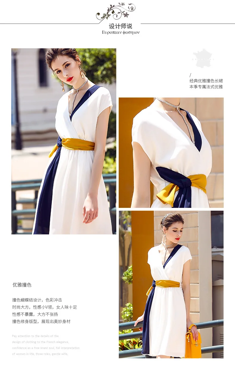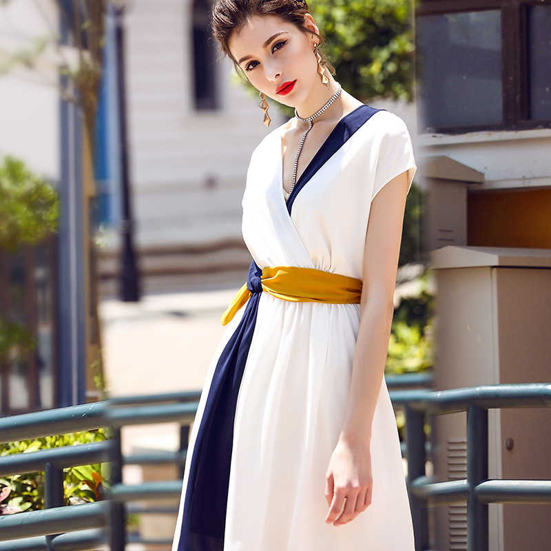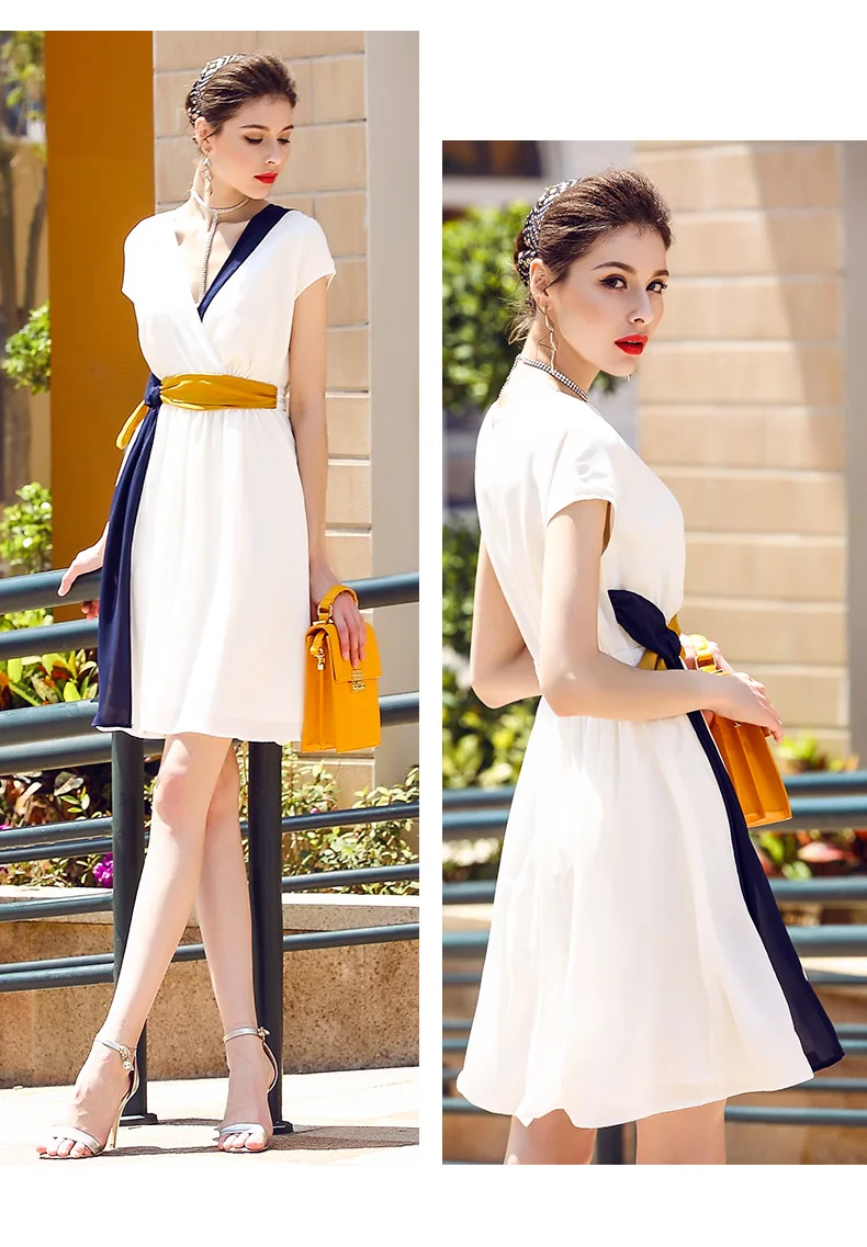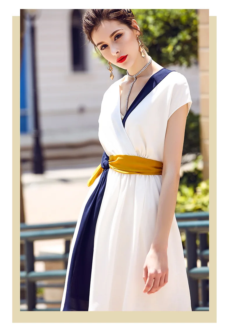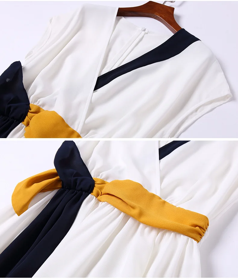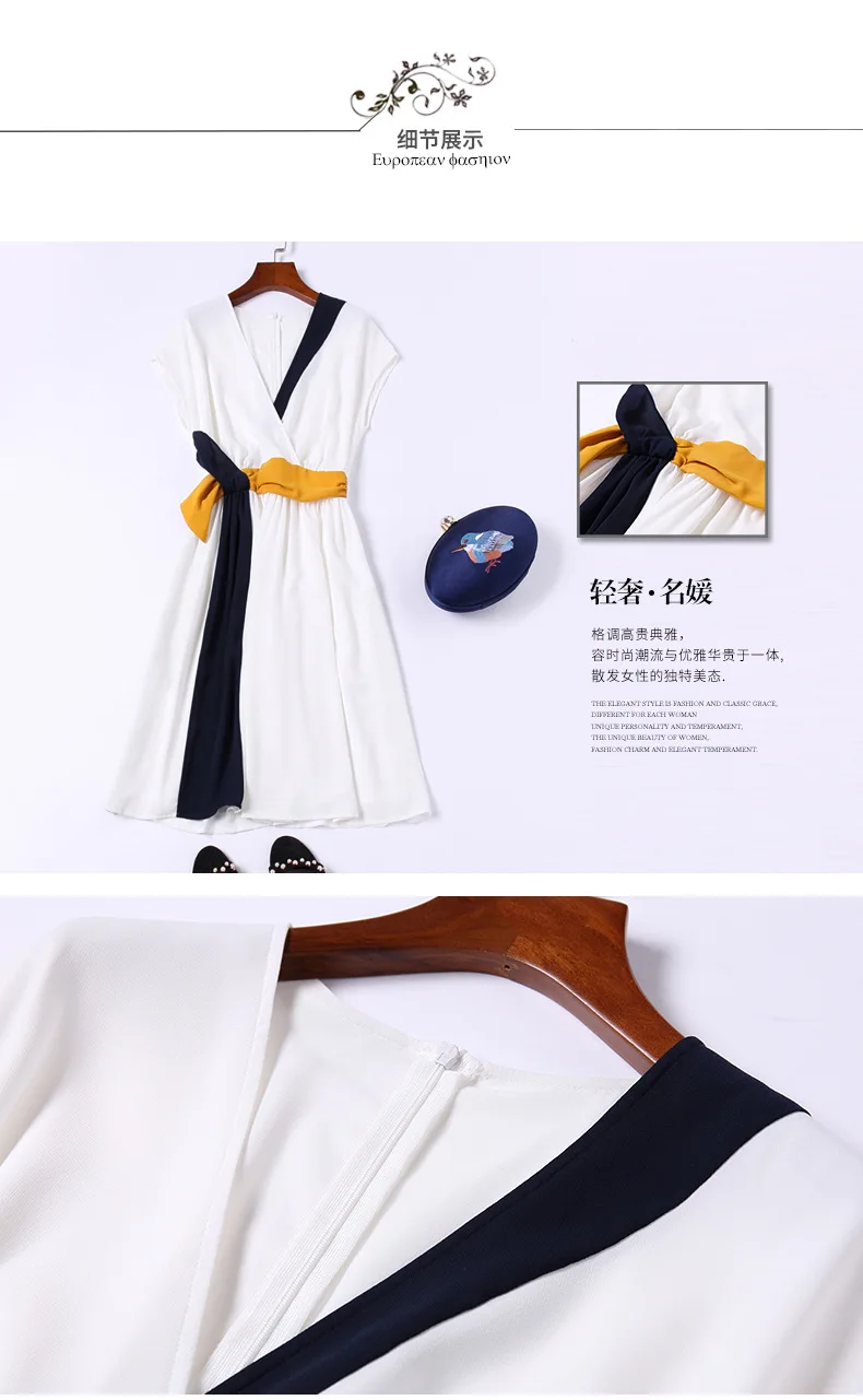 2017 Kakagogo Casual Fashion Patchwork Sleeveless V-neck White Summer Dresses Xl D093
