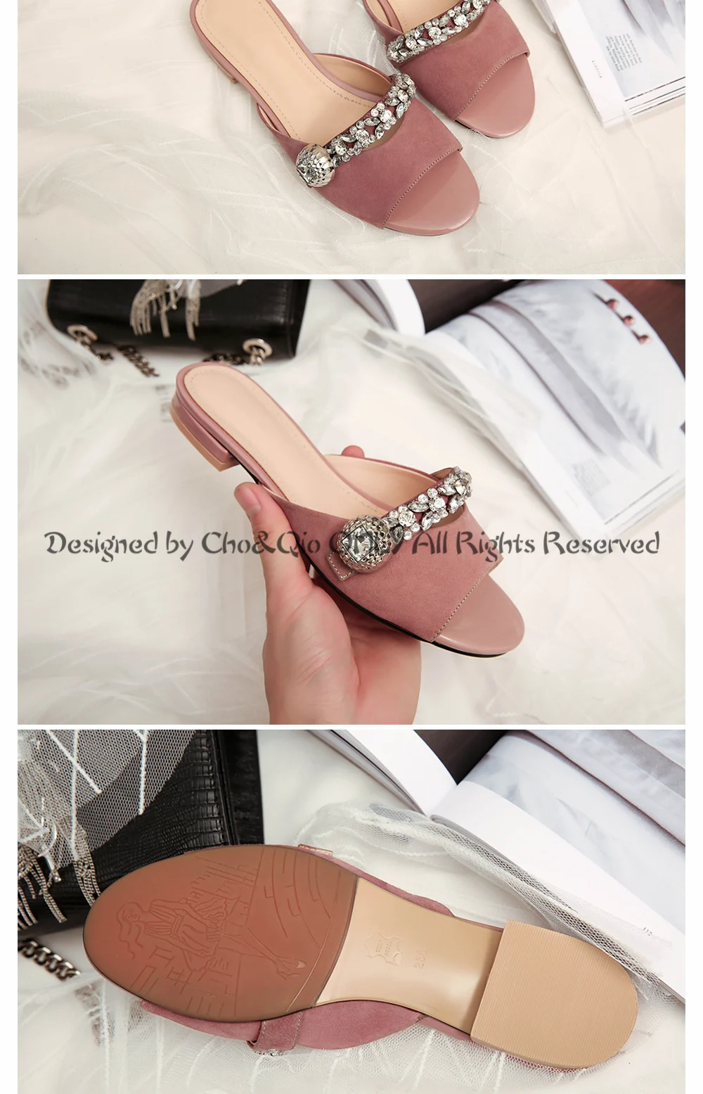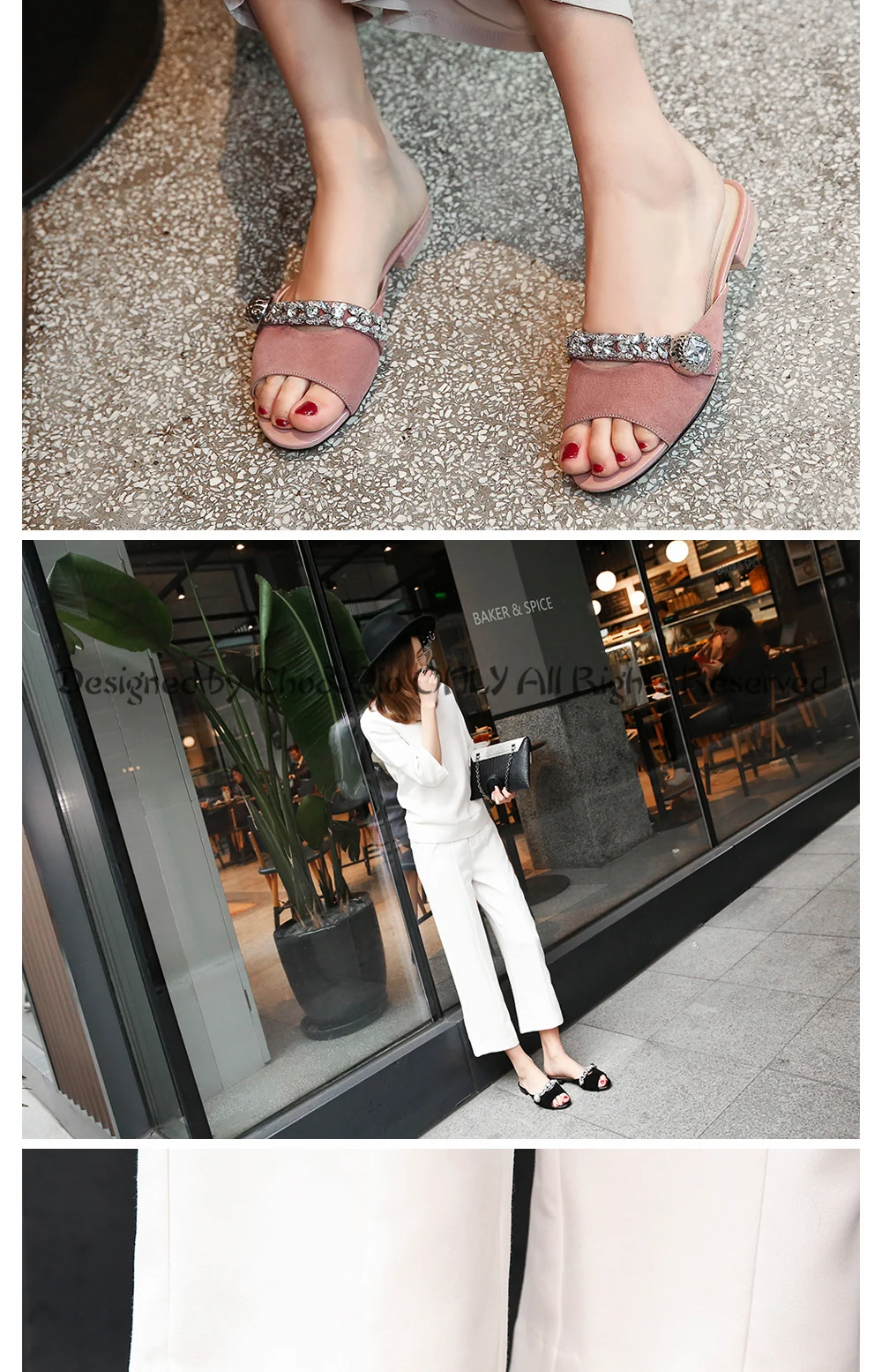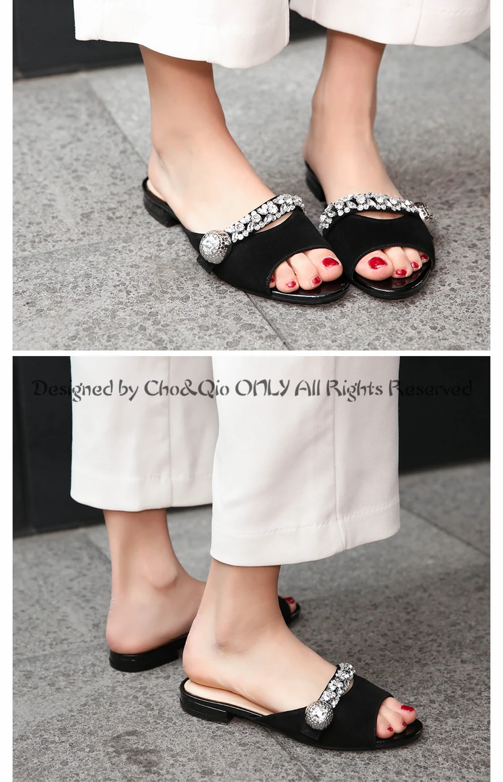 2017 Summer New Brand Shoes Women Slides High Heels 2cm Ladies Genuine Leather Sandals Party Slippers Shoes Big Size 34-43
