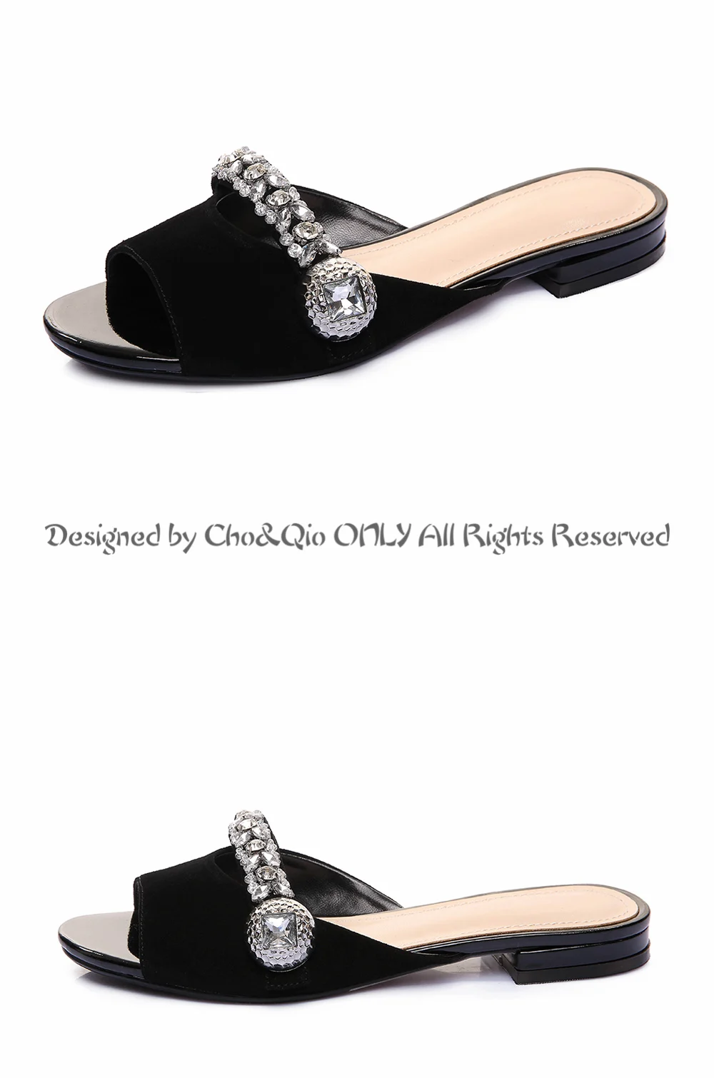 2017 Summer New Brand Shoes Women Slides High Heels 2cm Ladies Genuine Leather Sandals Party Slippers Shoes Big Size 34-43