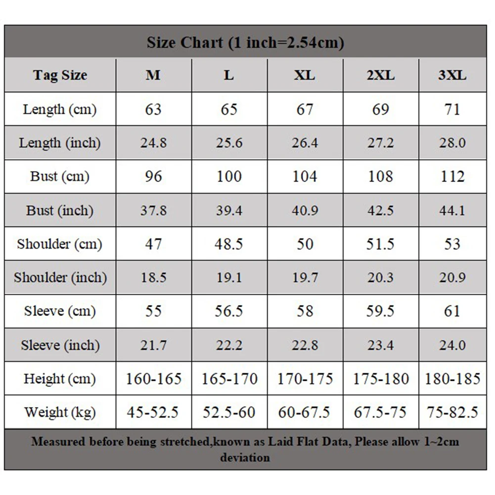 *Tag Size:M-3XL,Please make sure that these actual measurements will fit you.