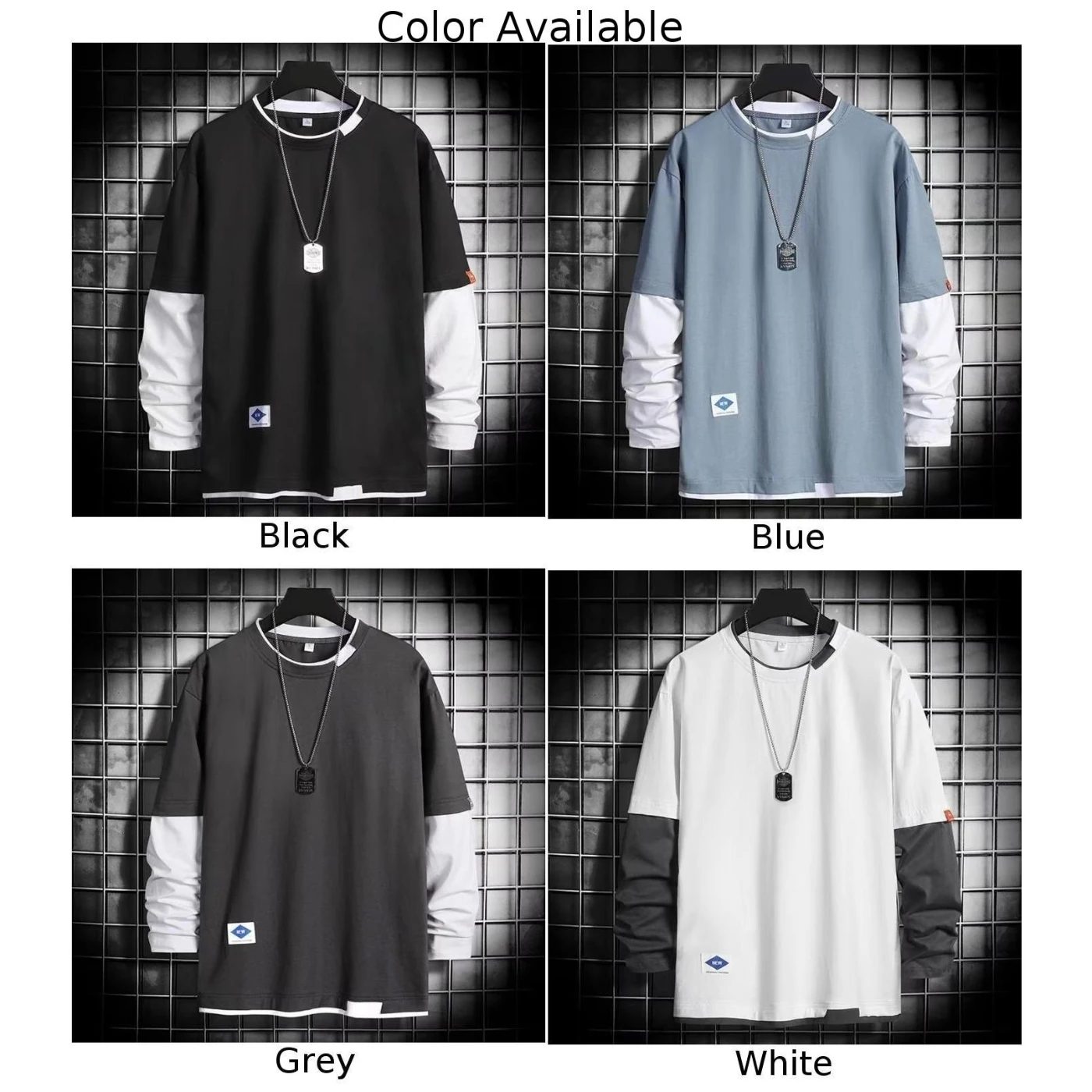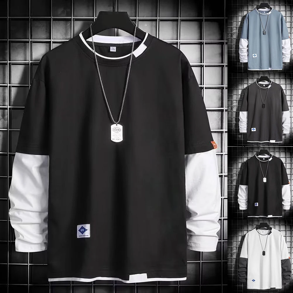 * Item Features:Men,Casual,Fashion,Color Matching Long Sleeve T-shirt,Top,Streetwear,Crew Neck Baggy Clothes,Undershirt