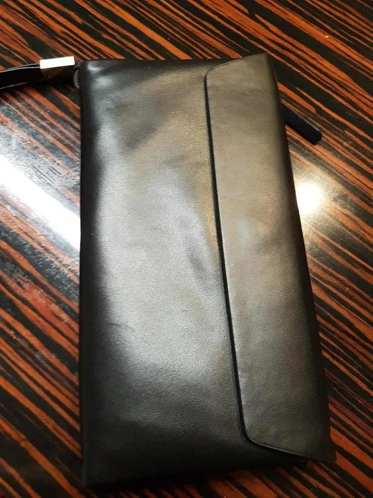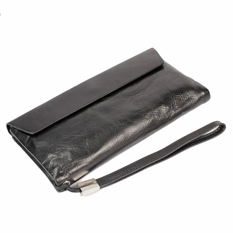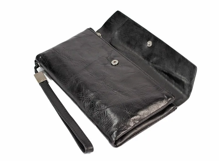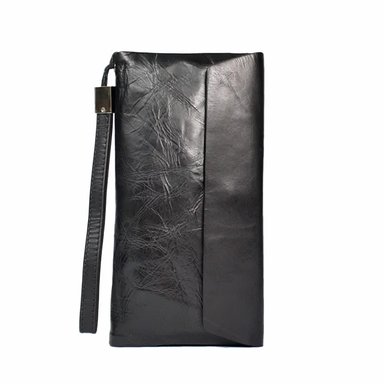 Mens' High Quality Black Genuine Leather Clutch Purse Male Business Bifold Wallet Men Casual Clutch Bag