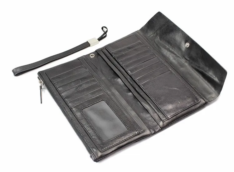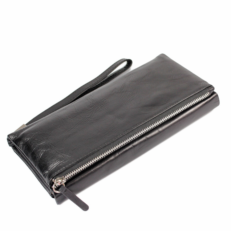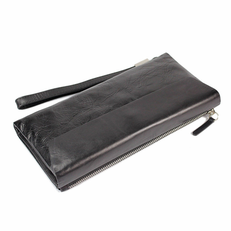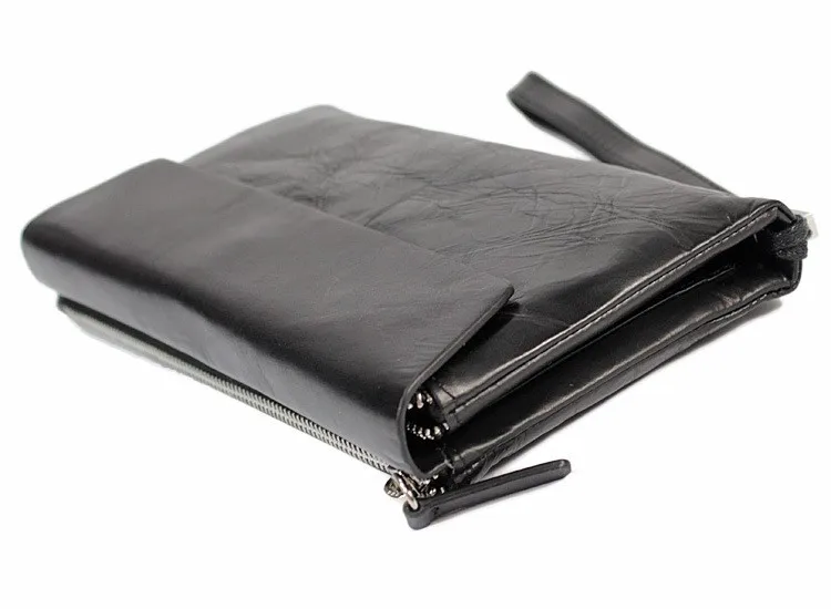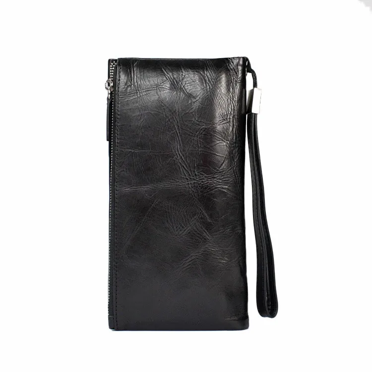Mens' High Quality Black Genuine Leather Clutch Purse Male Business Bifold Wallet Men Casual Clutch Bag