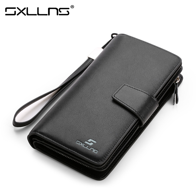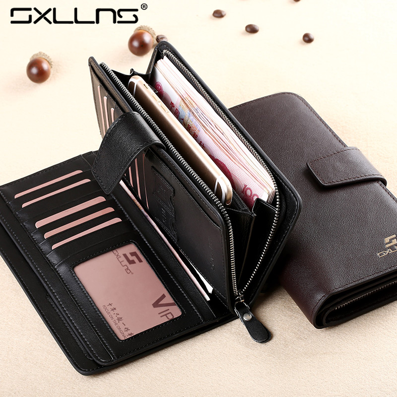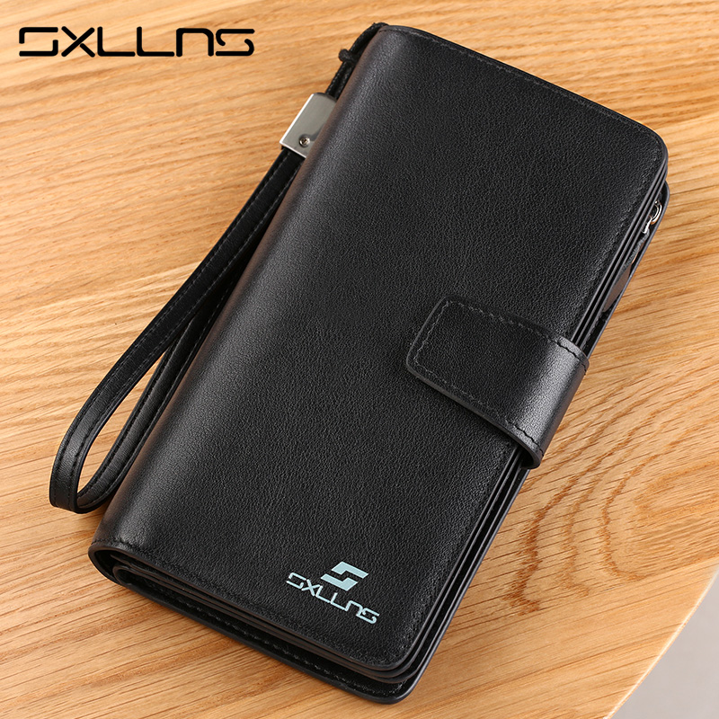 Brand Mens Wallet Leather Genuine Large Capacity Men Wallets Top Cowhide Soft Clutch Bags Sxllns Men's Purses Free Shipping
