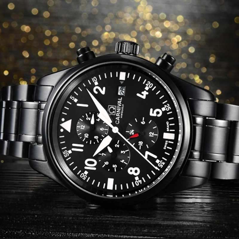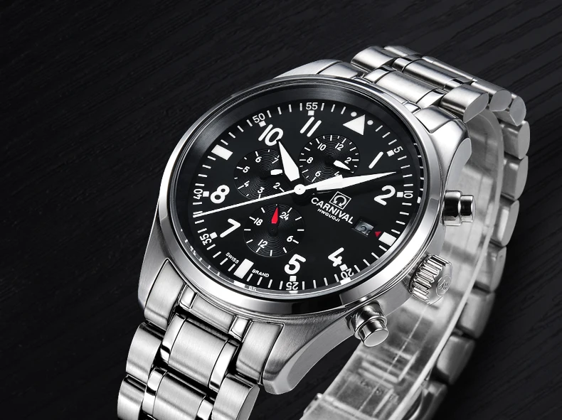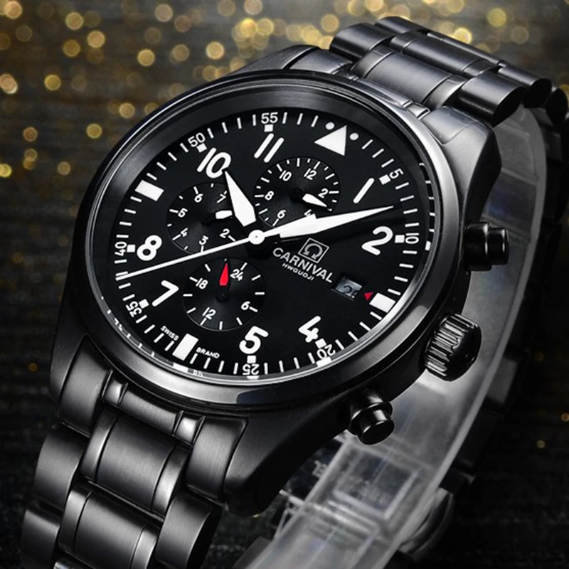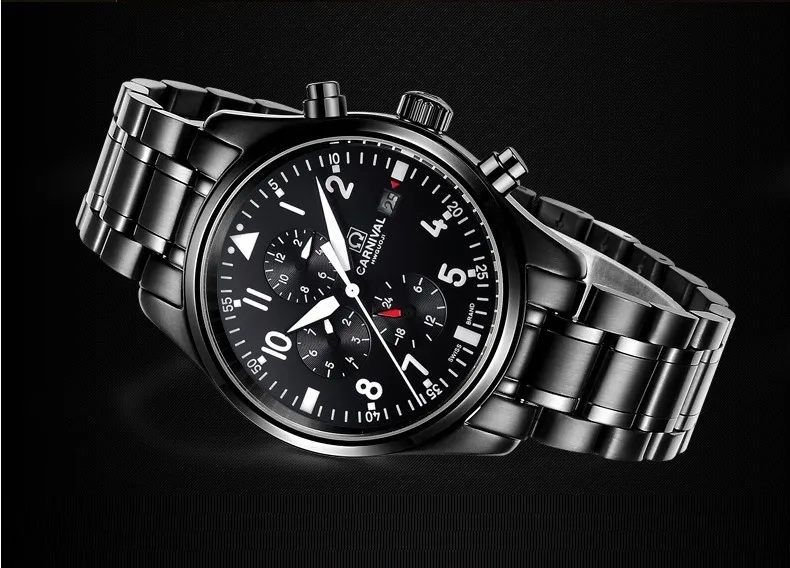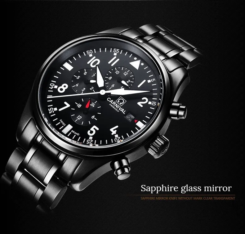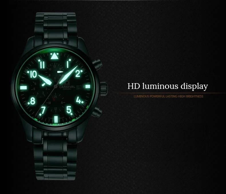 CARNIVAL High Quality Sport watch 100m waterproof Swimming Automatic Watch Men 24 hours Calendar HD Luminous Mechanical watches