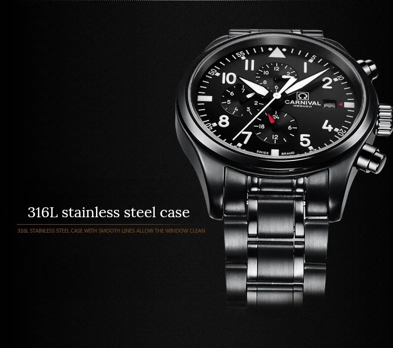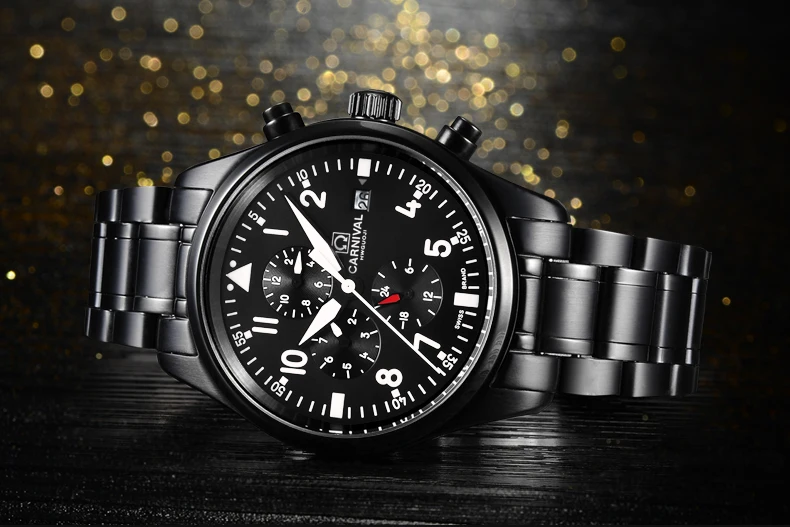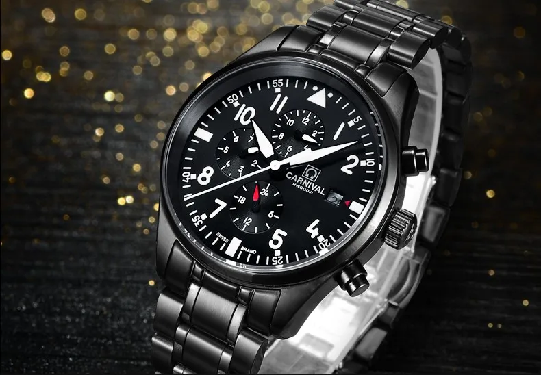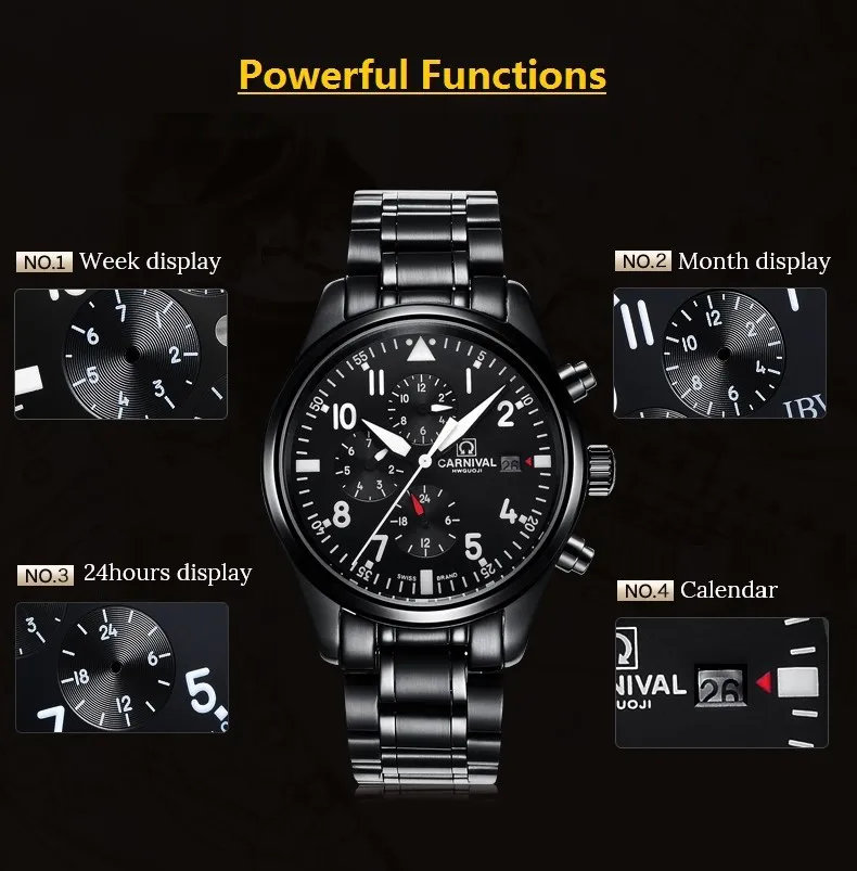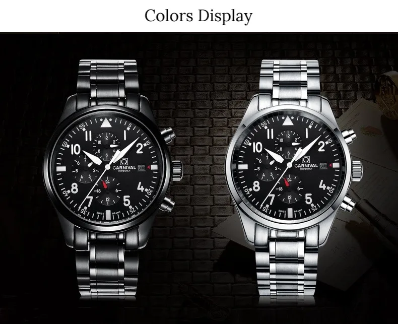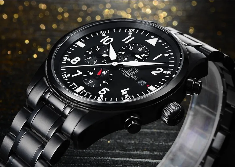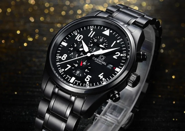 CARNIVAL High Quality Sport watch 100m waterproof Swimming Automatic Watch Men 24 hours Calendar HD Luminous Mechanical watches