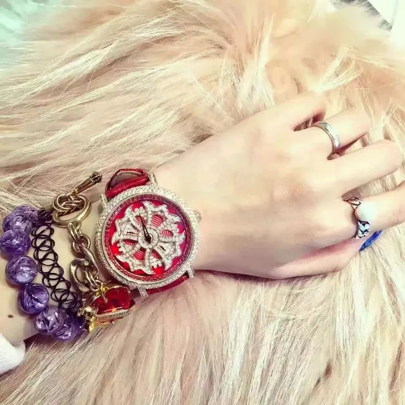 Fashion Brand Watch Women Big Diamond Stone Watches Lady Shining Rotation Dress watch Female Genuine Leather Quartz Wristwatches