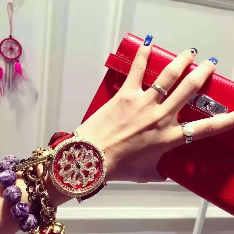 Fashion Brand Watch Women Big Diamond Stone Watches Lady Shining Rotation Dress watch Female Genuine Leather Quartz Wristwatches