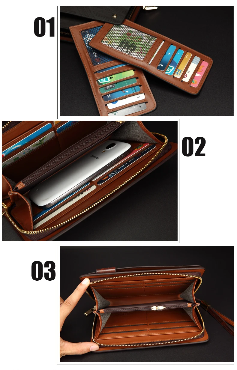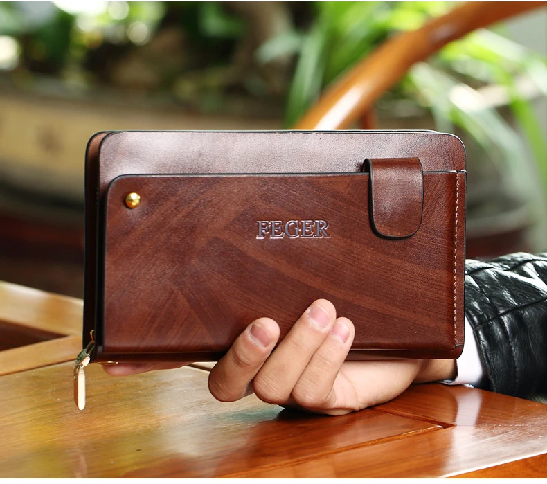 FEGER Men's Fashion Zipper Wallet Leather Casual Clutch Bag Large Capacity Wallet Clutch Purse Free Shipping