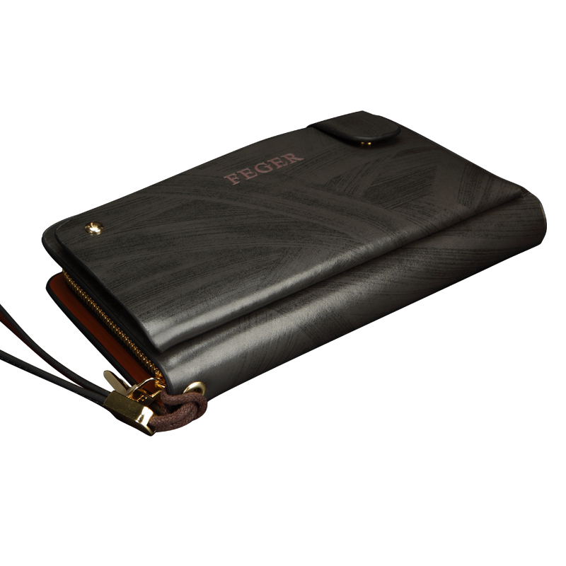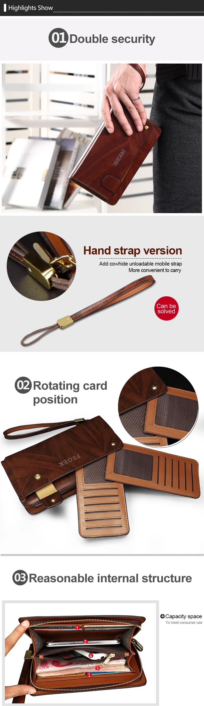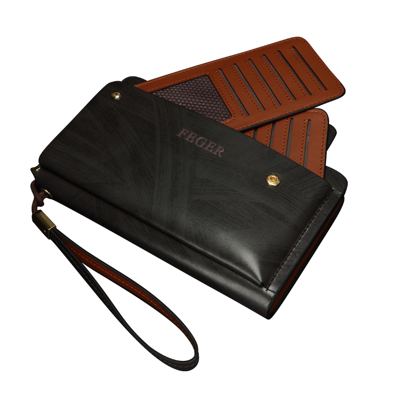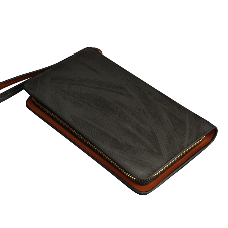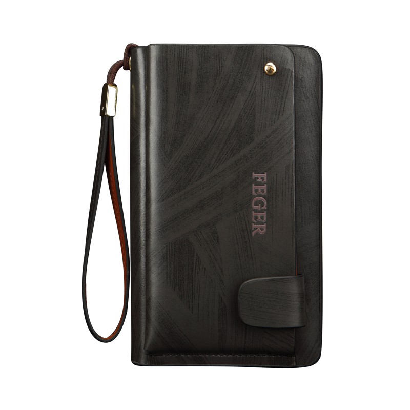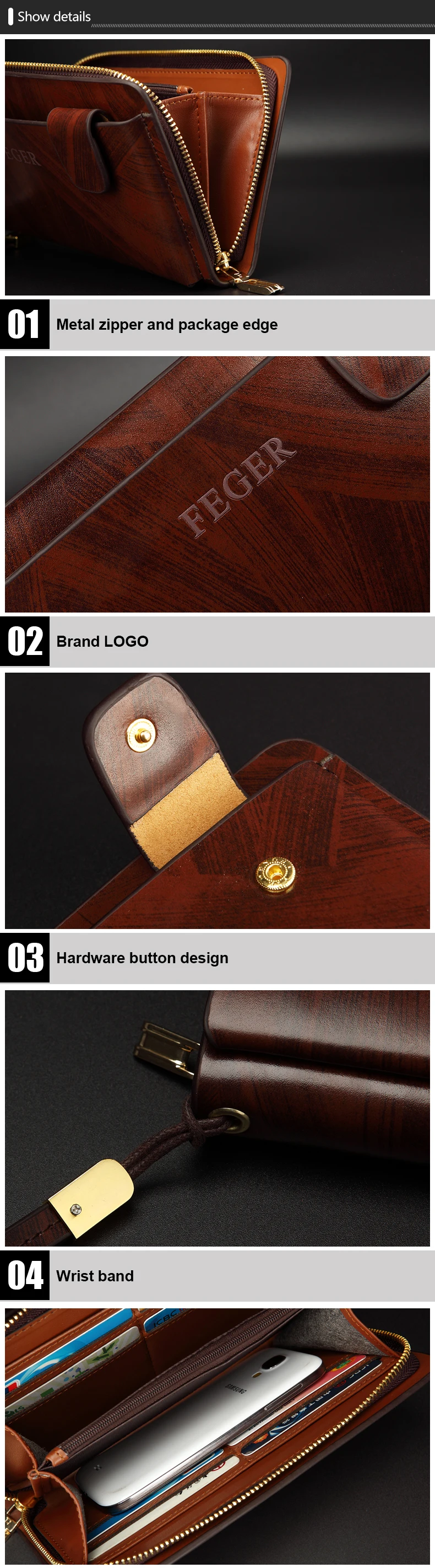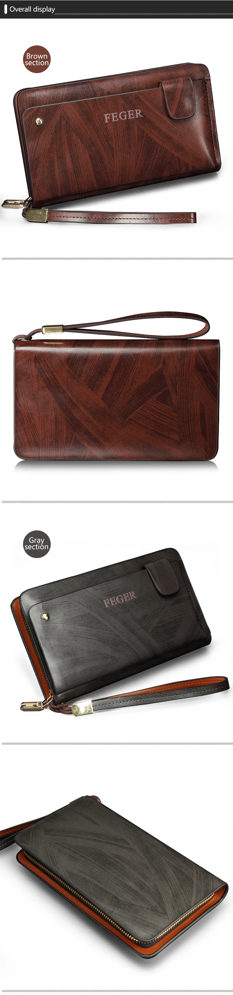 FEGER Men's Fashion Zipper Wallet Leather Casual Clutch Bag Large Capacity Wallet Clutch Purse Free Shipping