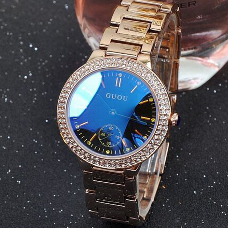 USD 27.50/pieceUSD 14.66/pieceUSD 19.85/pieceUSD 19.66/pieceUSD 18.15/pieceUSD 13.35/pieceUSD 28.17/pieceUSD 19.38/piece GUOU Brand Women Watches Luxury Blue Glass Women's Watches Shiny Diamond Watch Rose Gold Ladies Watch Clock relogio feminino