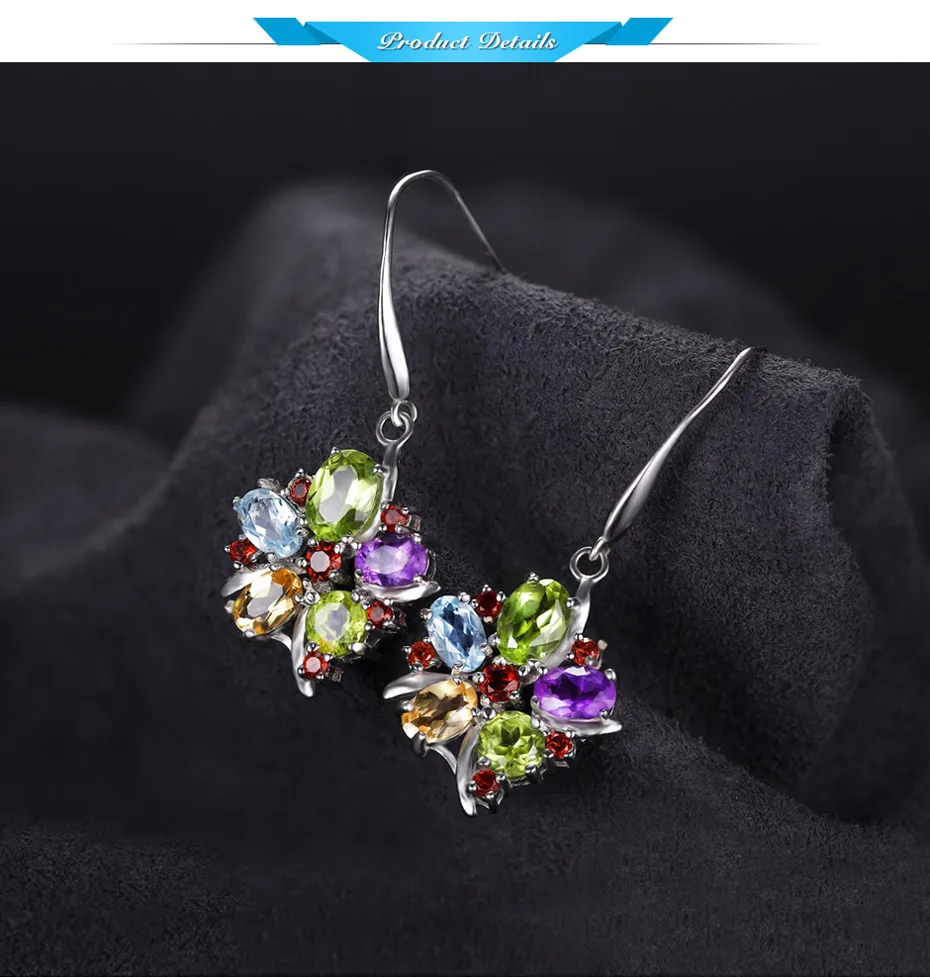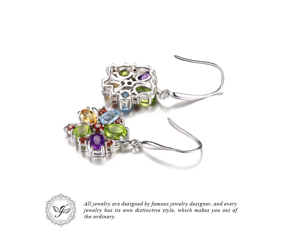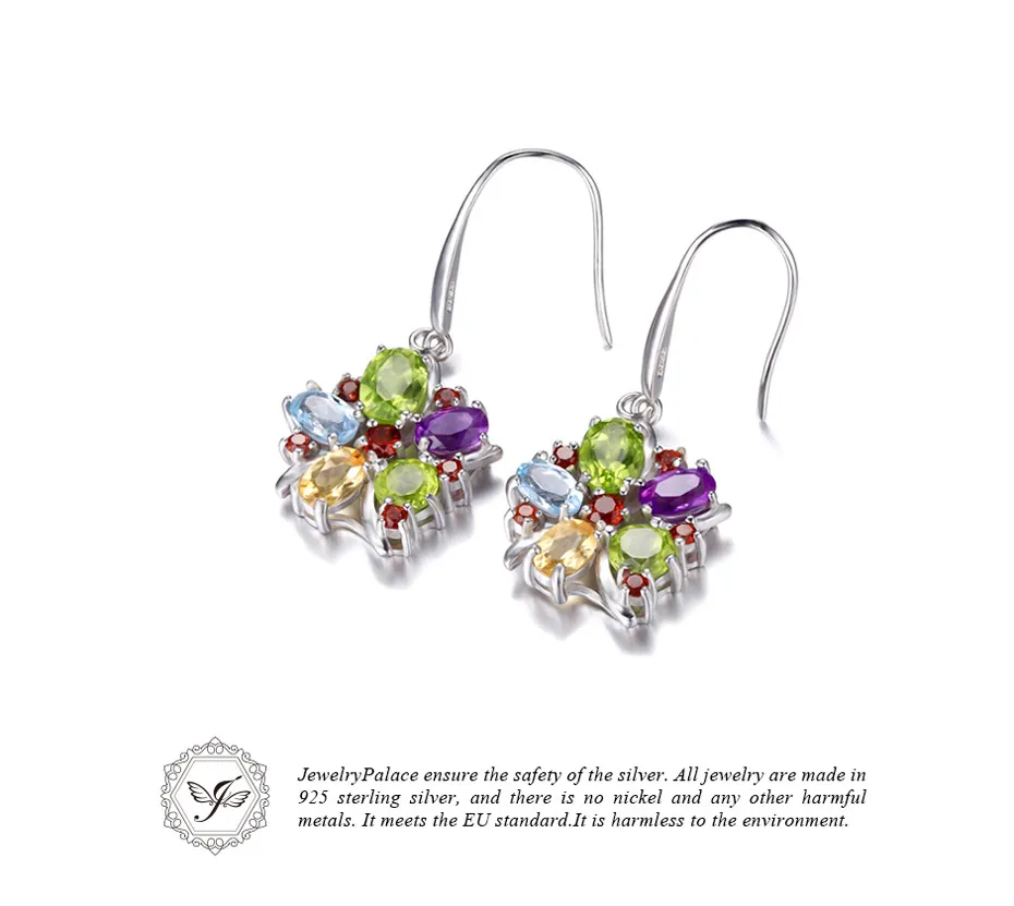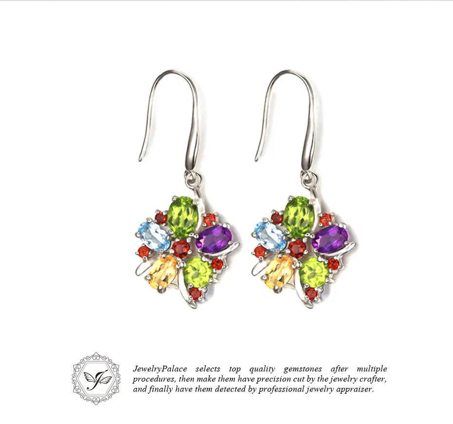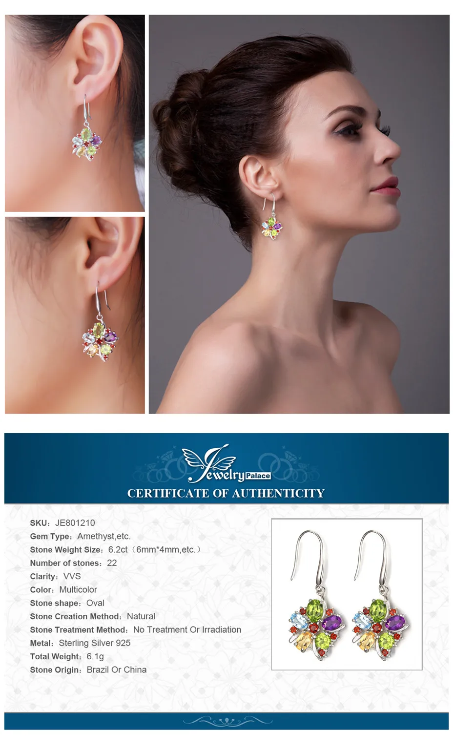 JewelryPalace Flower Multicolor 6.2ct Natural Amethyst Garnet Peridot Citrine Blue Topaz Dangle Earrings 925 Sterling Silver