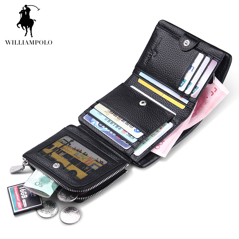 Luxury Brand TIME LIMITED SELL WilliamPOLO 2017 Italian Genuine Leather 3 fold Card Holders Short Coin Purse POLO138