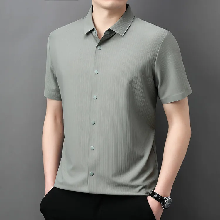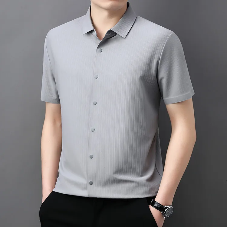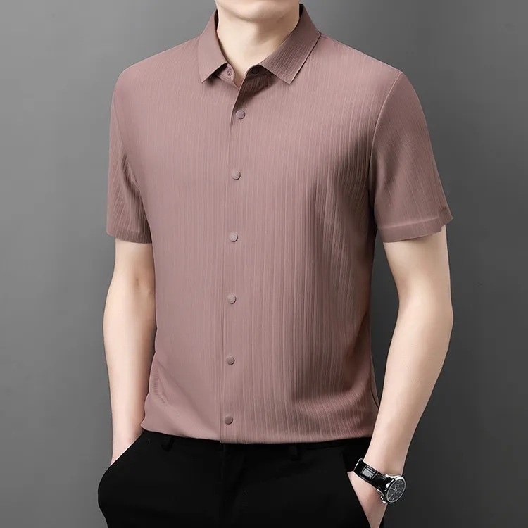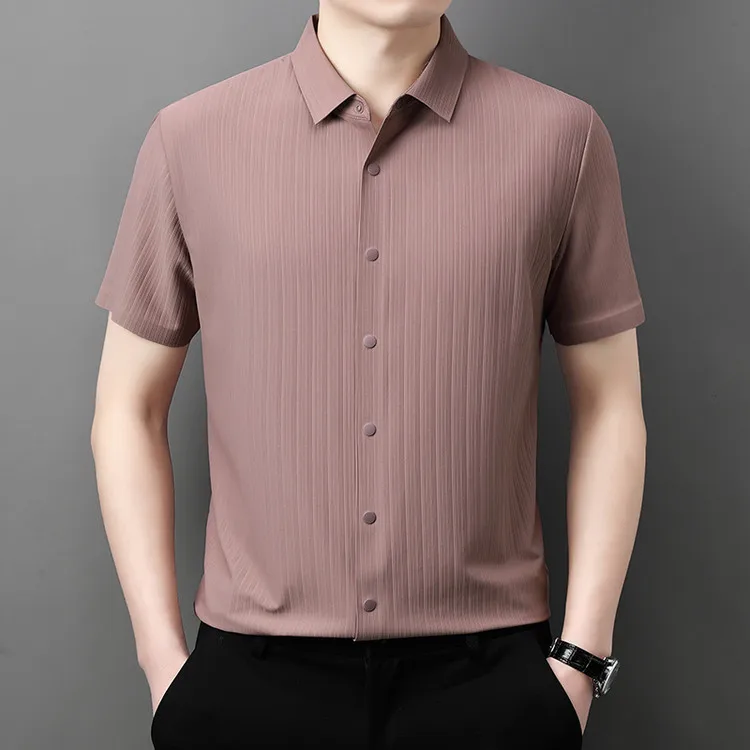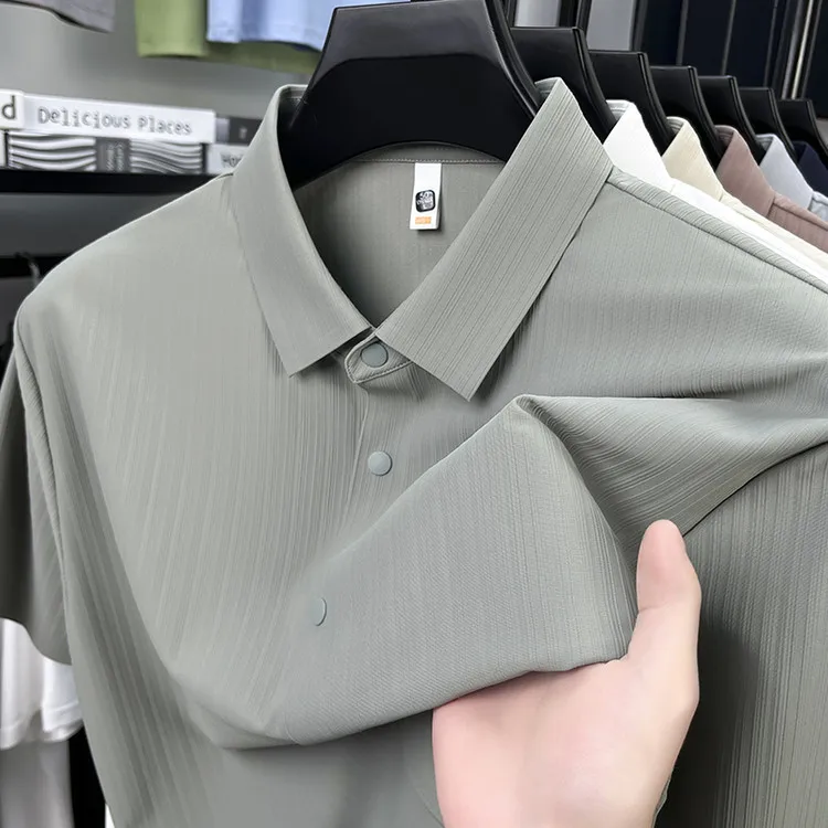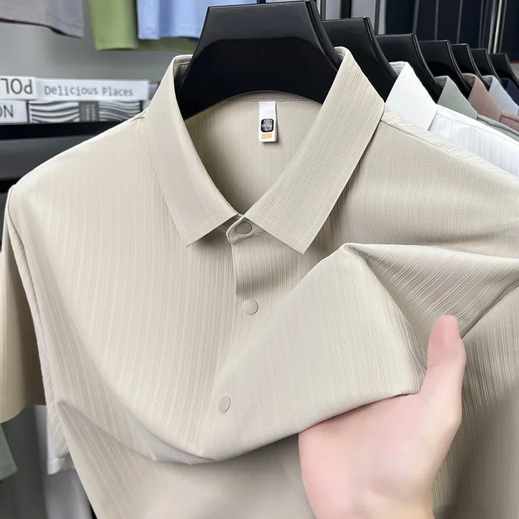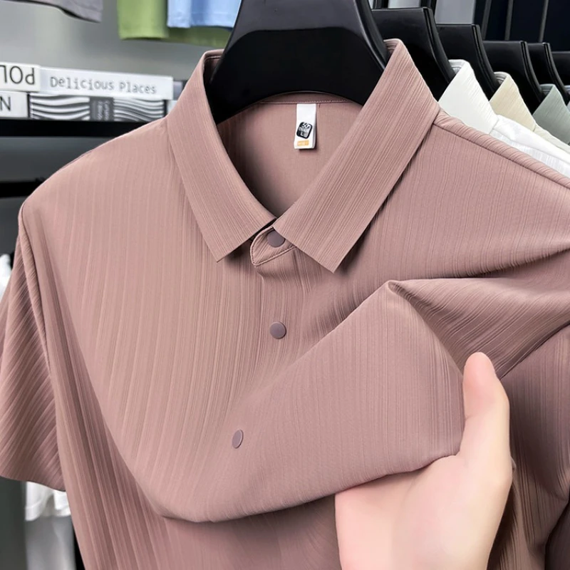 Men's Premium UV Protection Polo Shirt - Vertical Stripe Textured Design, Stretch Polyamide-Spandex Fabric High Quality Shirt