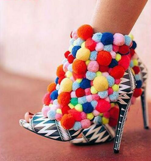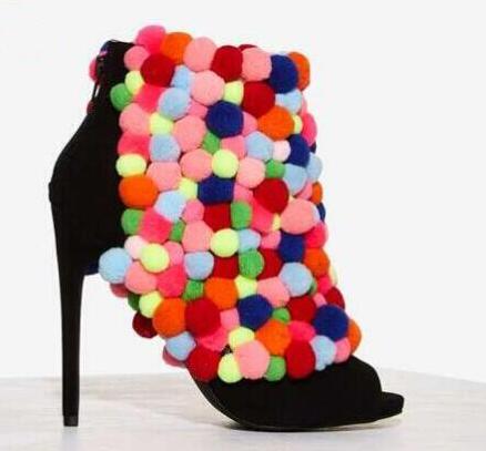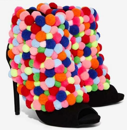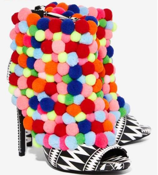 MIQUINHA 2017 Hot Mixed Colors Pom Pom Women Peep Toe Ankle Boots Geometry Leather Ladies High Heel Boots Female Party Boots