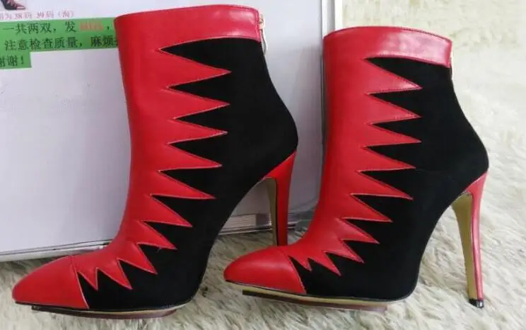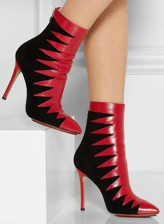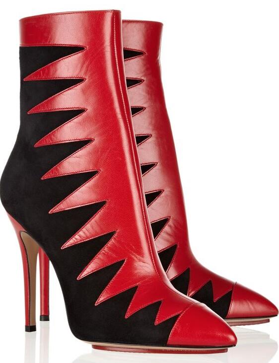 MIQUINHA Newest Red Leather Patchwork Women Black Suede Ankle Boots Sexy Pointy Toe Ladies High Heel Boots Spring Knight Boots