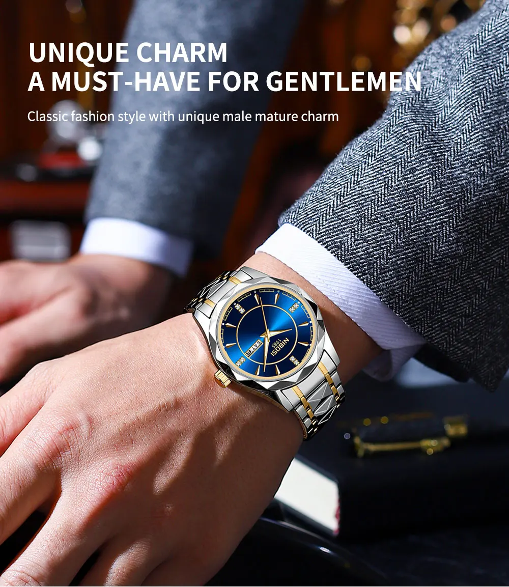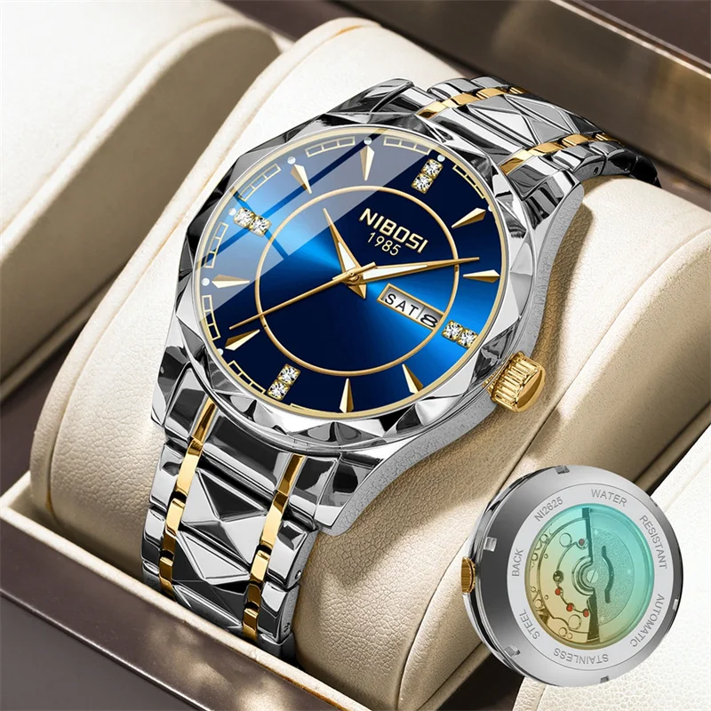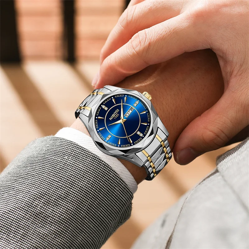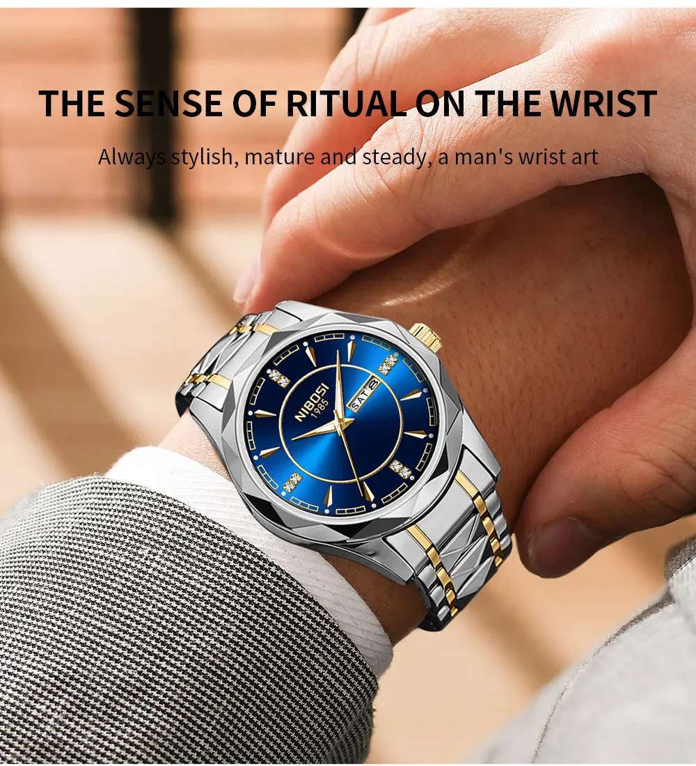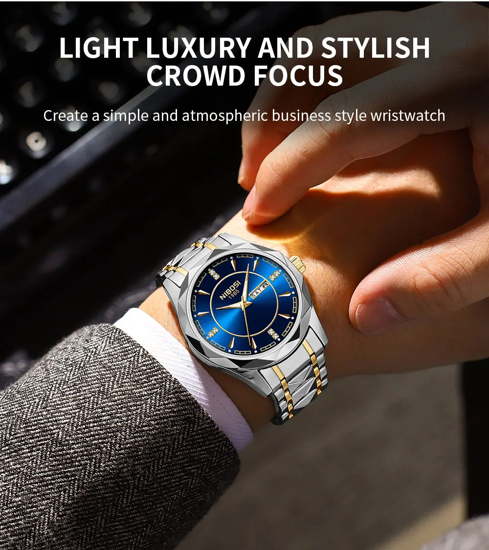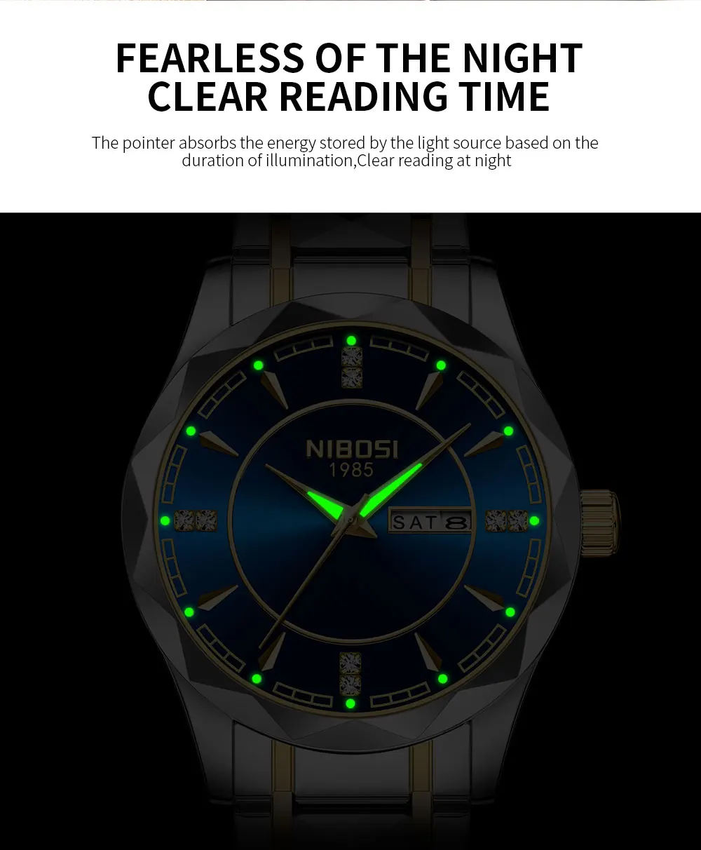 NIBOSI Fashion Men Quartz Watch Stainless Steel Waterproof Luminous Week Date Men's Watches Sports Male Clock Relogio Masculino