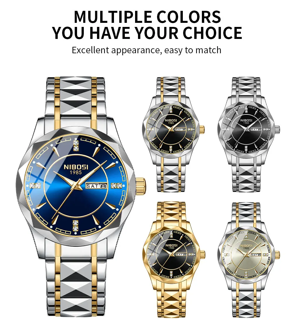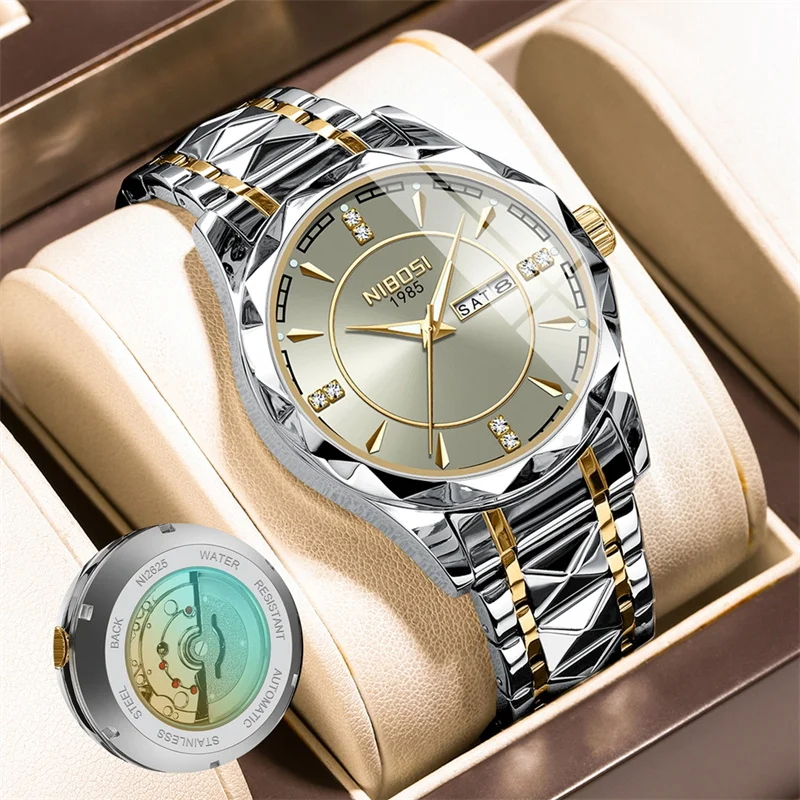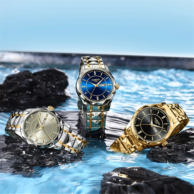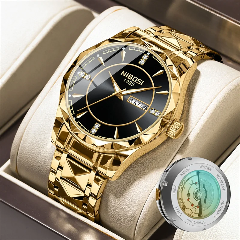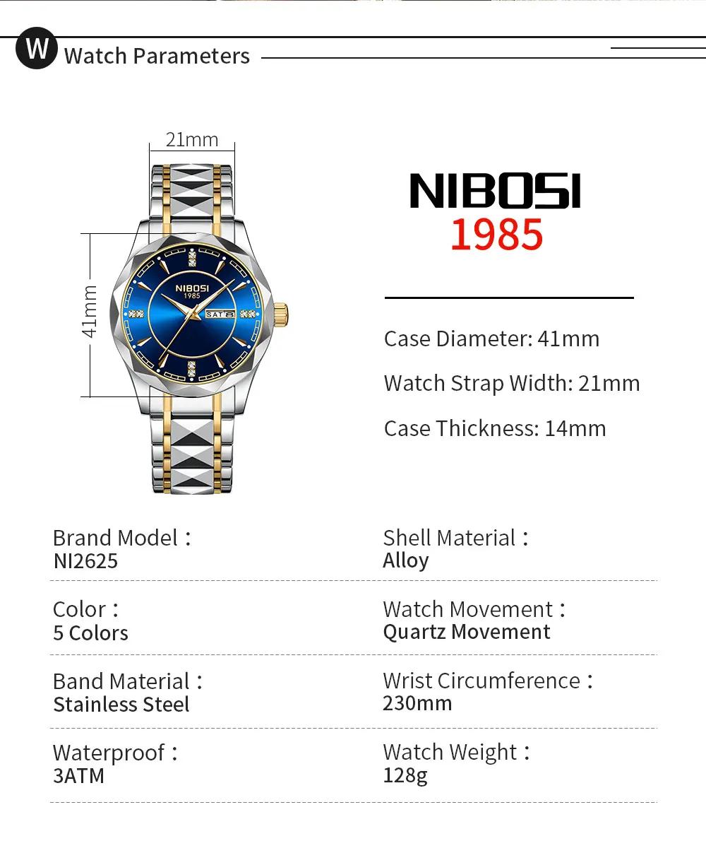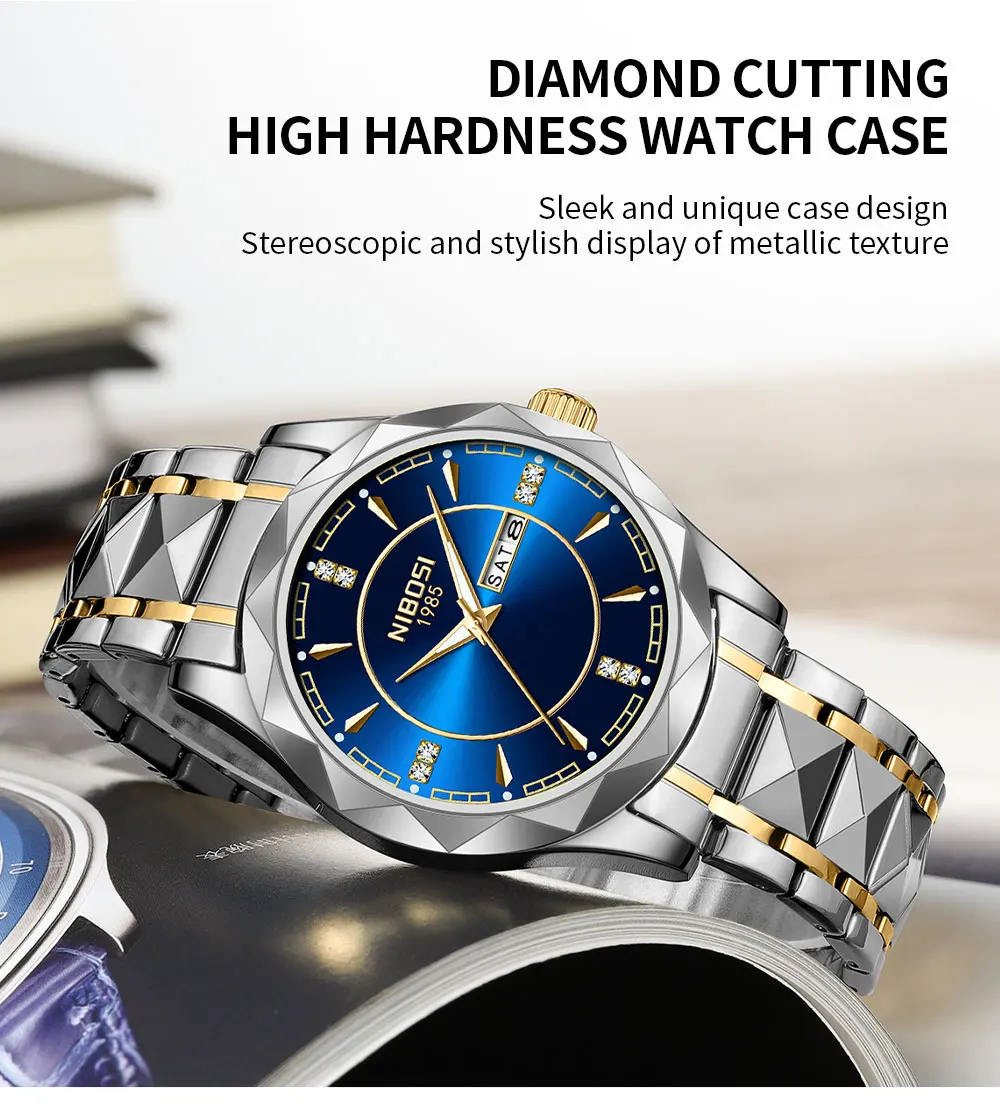 NIBOSI Fashion Men Quartz Watch Stainless Steel Waterproof Luminous Week Date Men's Watches Sports Male Clock Relogio Masculino