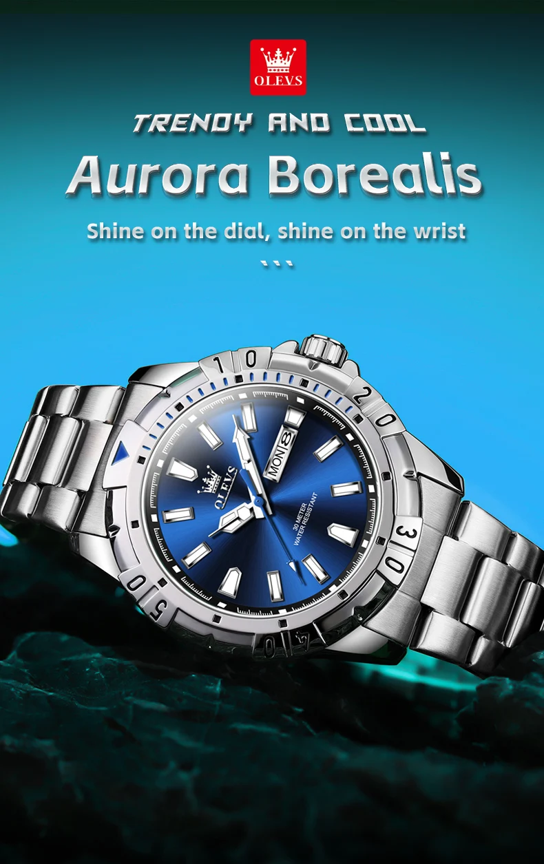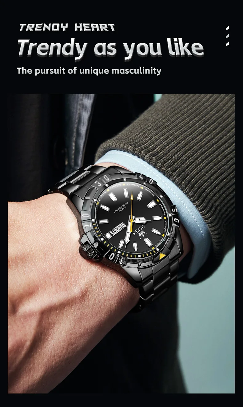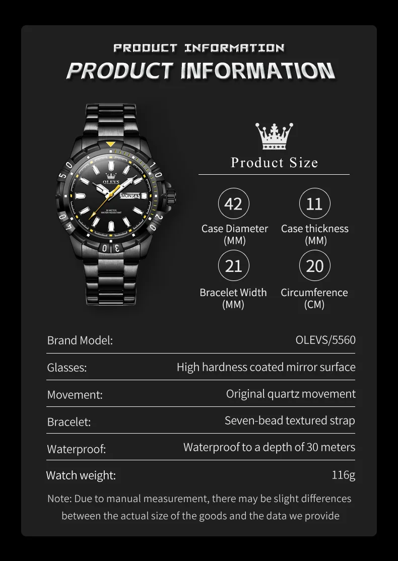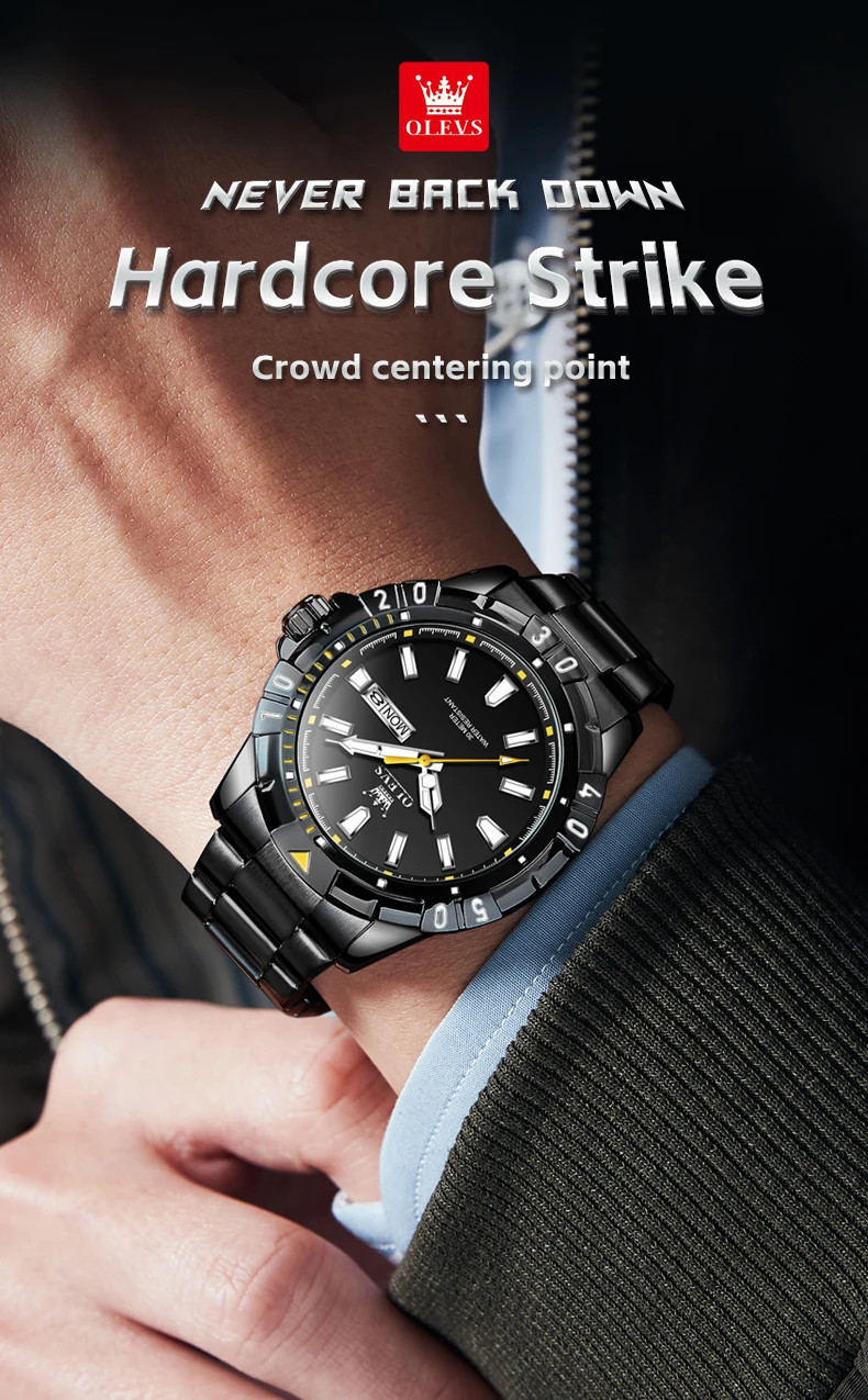 OLEVS Luxury Stainless Steel Black Sports Quartz Watch for Men Waterproof Luminous Week Date Mens Watches Relogio Masculino