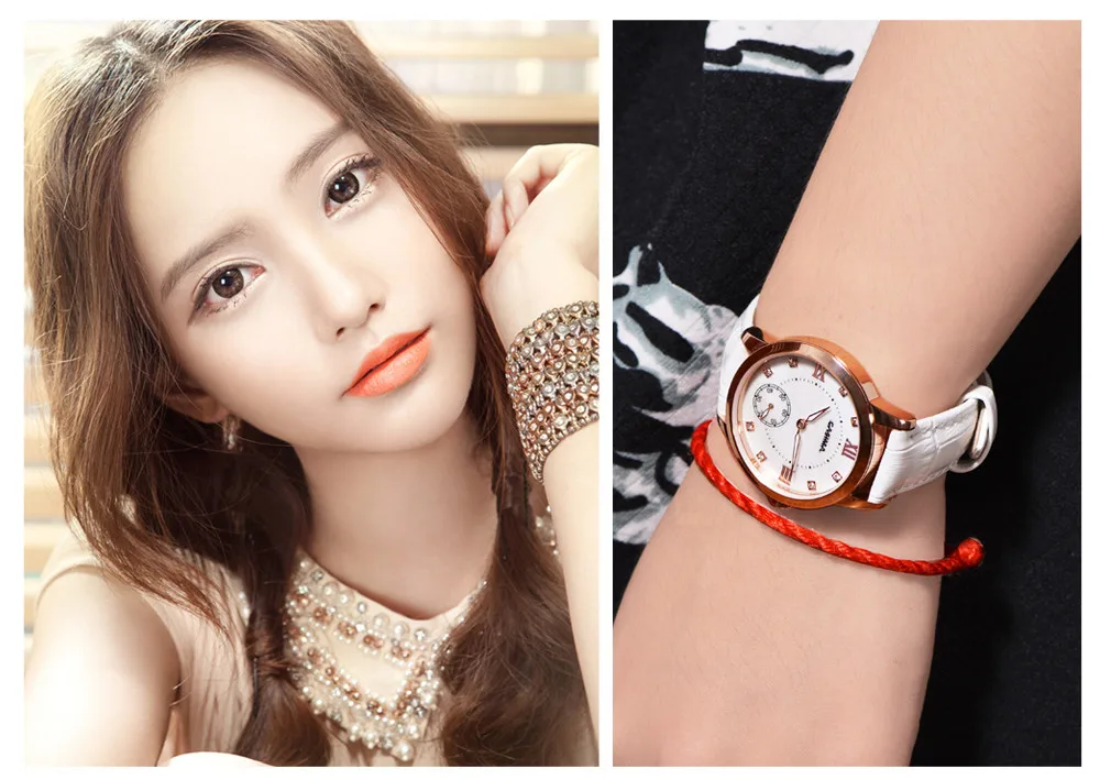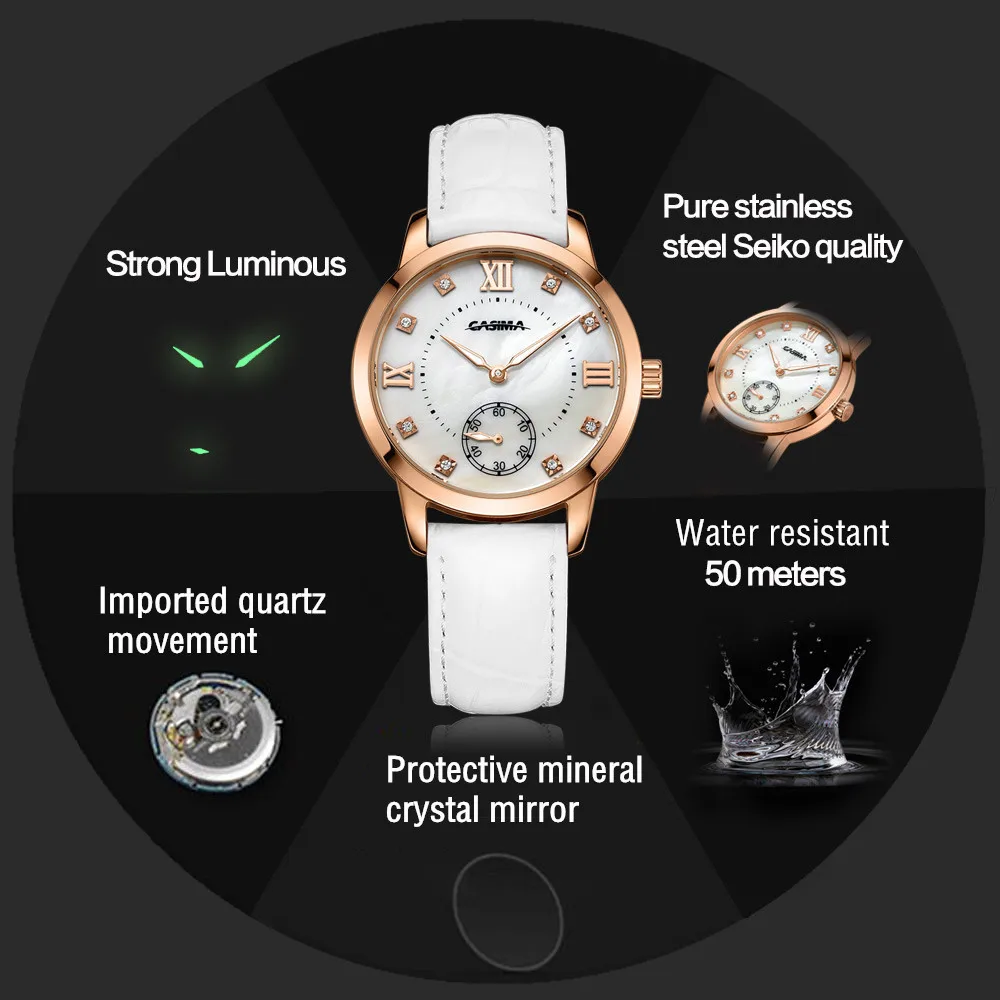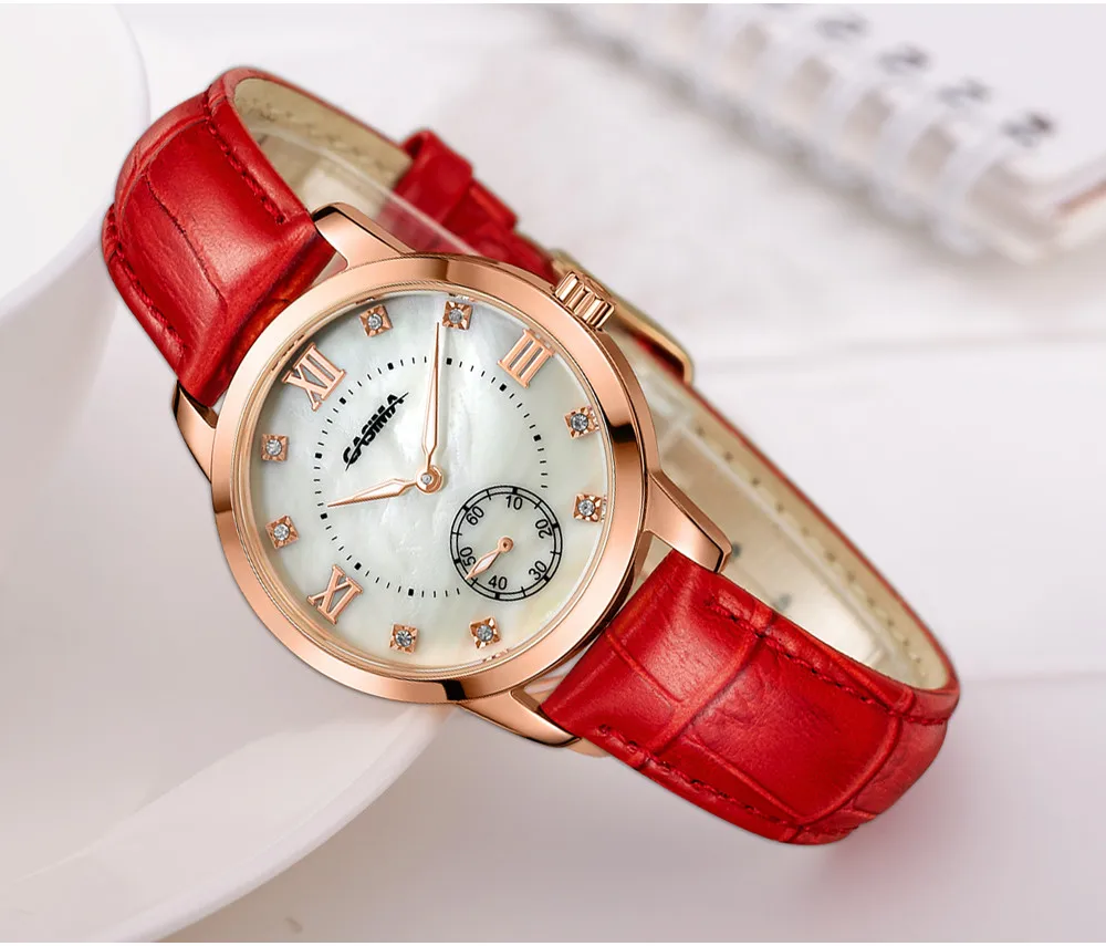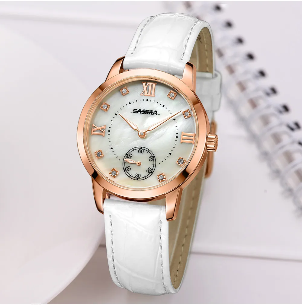 2. Round dial,one Sub-dial for 60 second, Shell surface + Czech stones