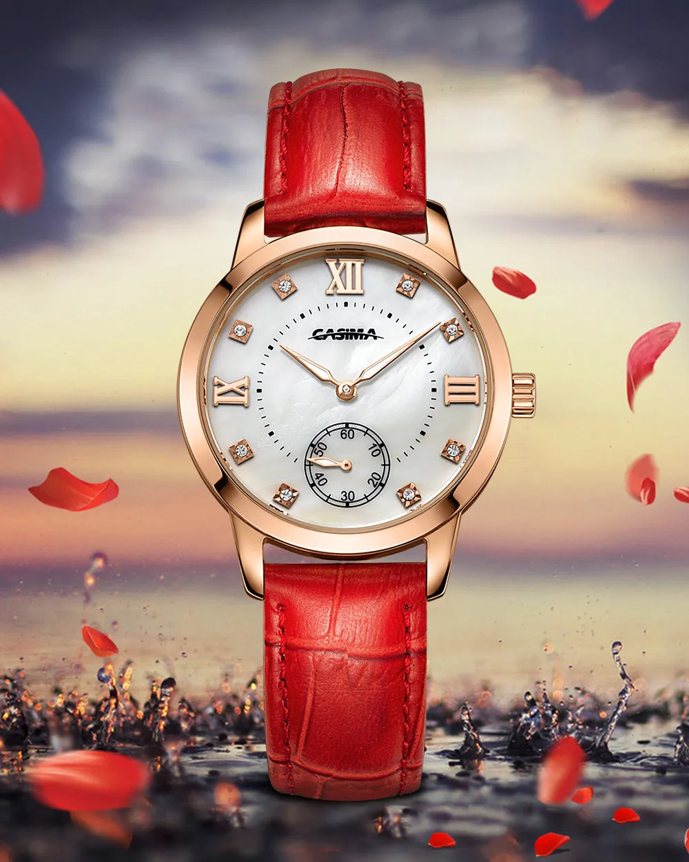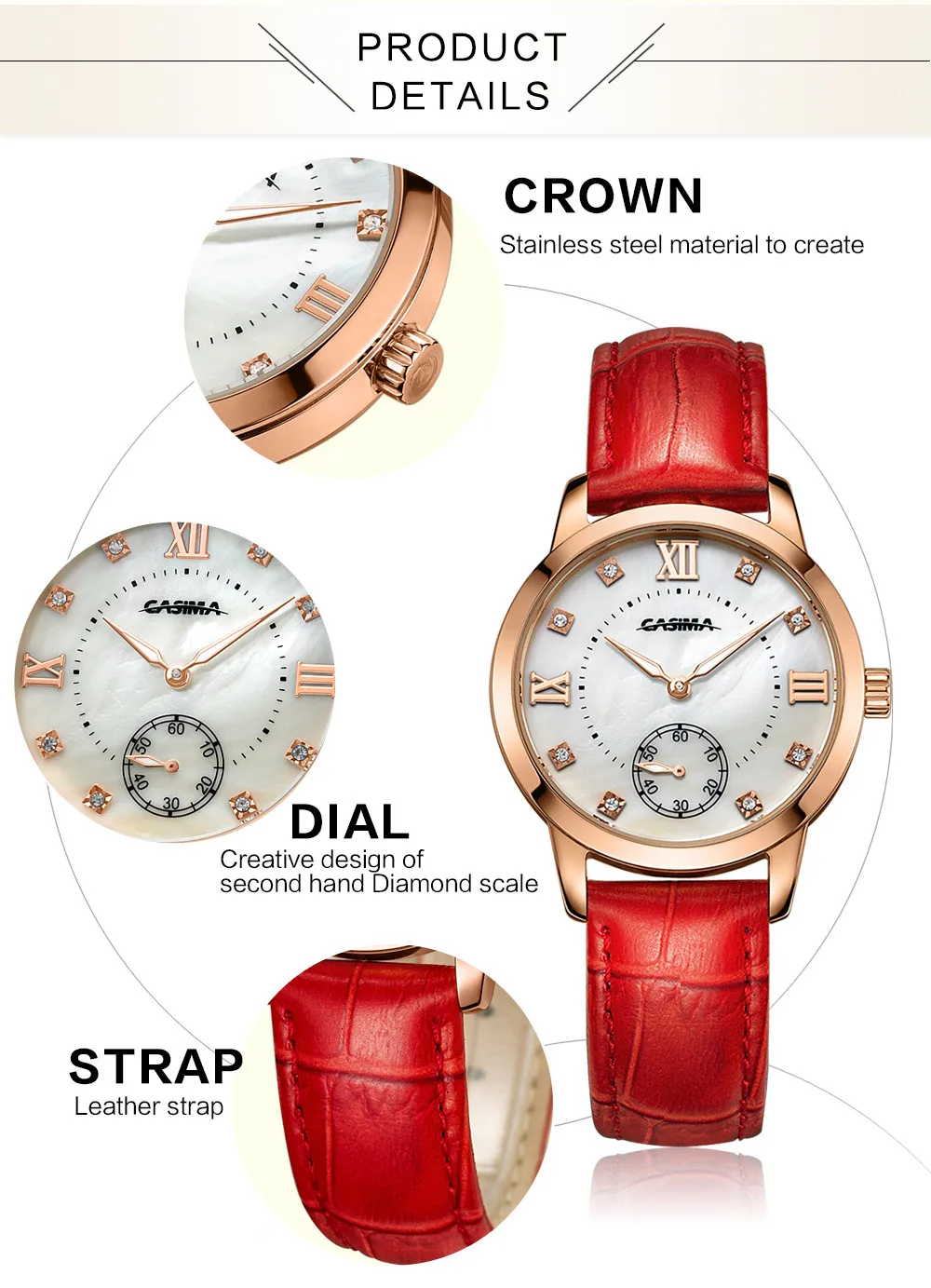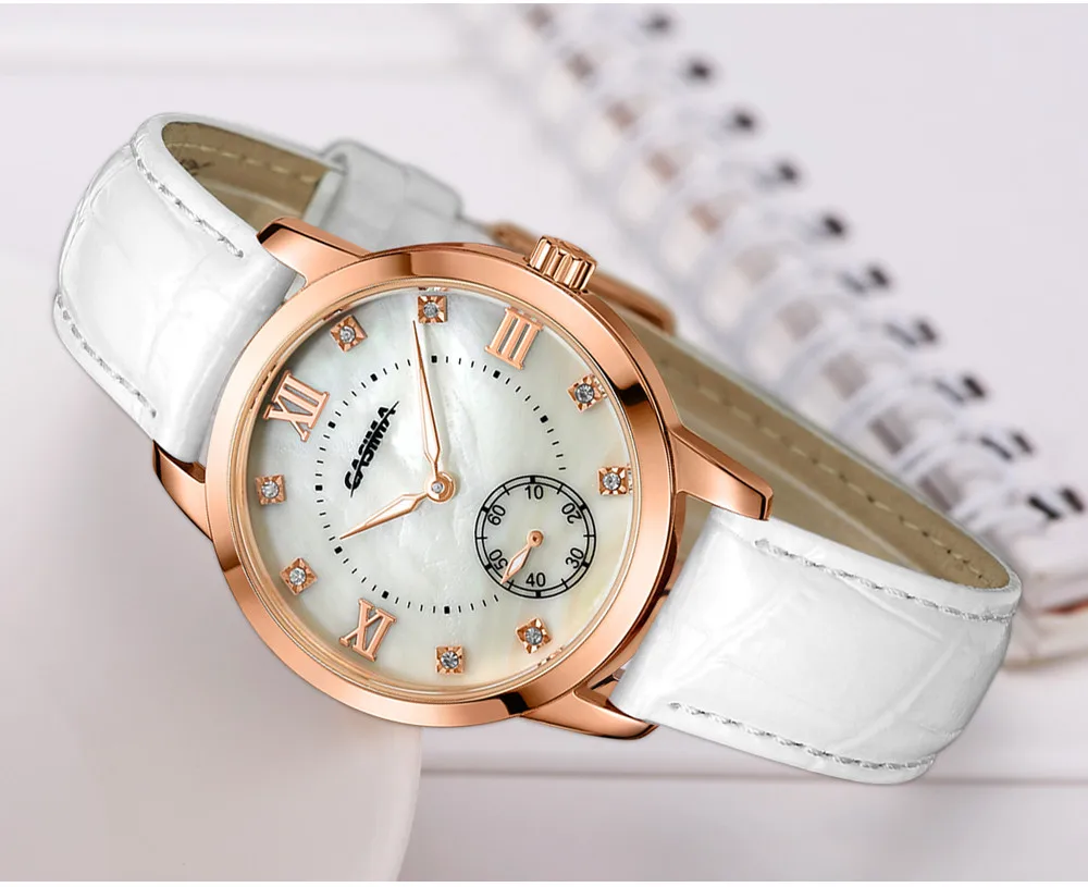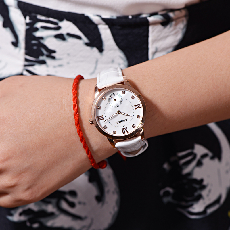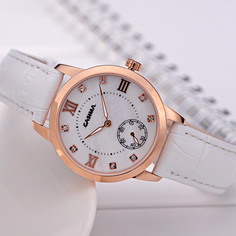 2. Round dial,one Sub-dial for 60 second, Shell surface + Czech stones