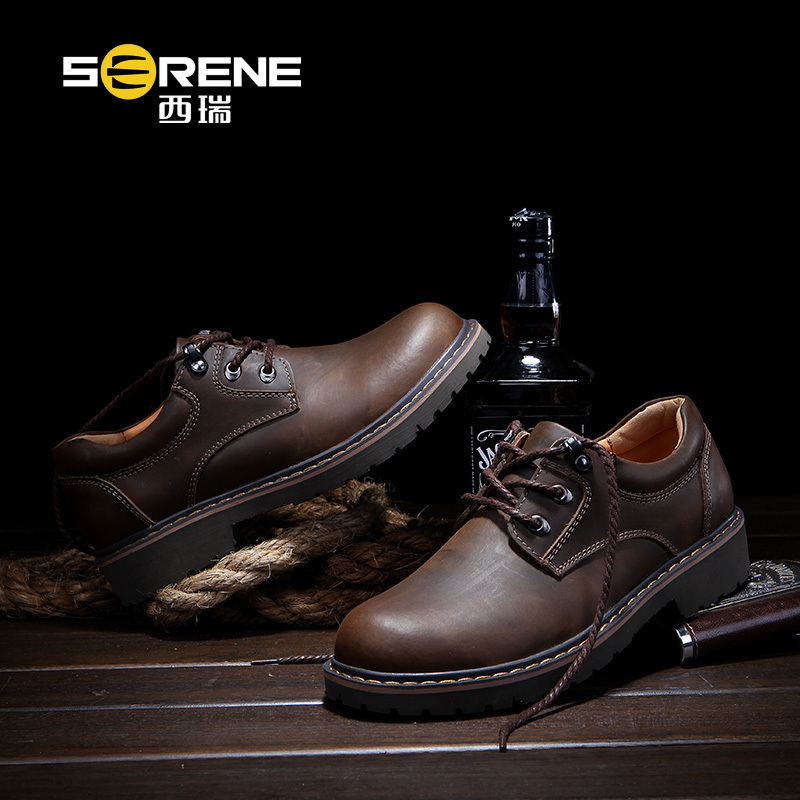 SERENE 6277 Autumn Low Top Height Increasing Men's Casual Leather Shoes Fashion Crazy Horse Leather Man Tooling Shoes Size 45 46