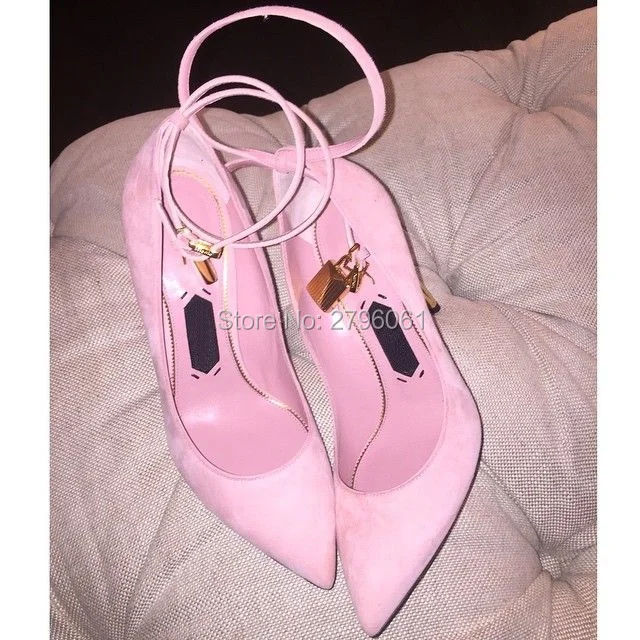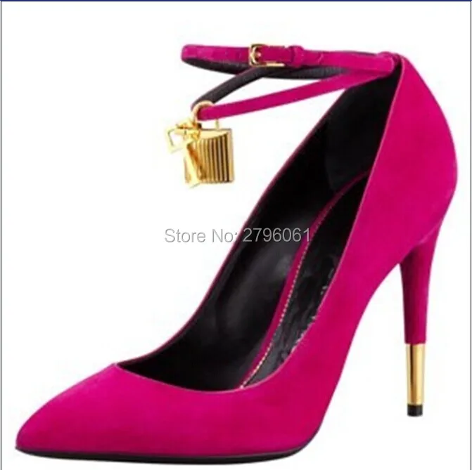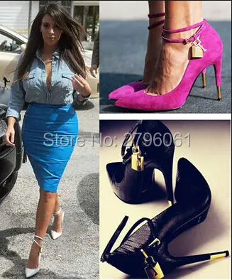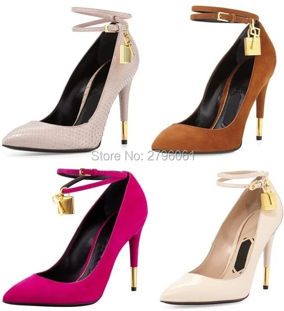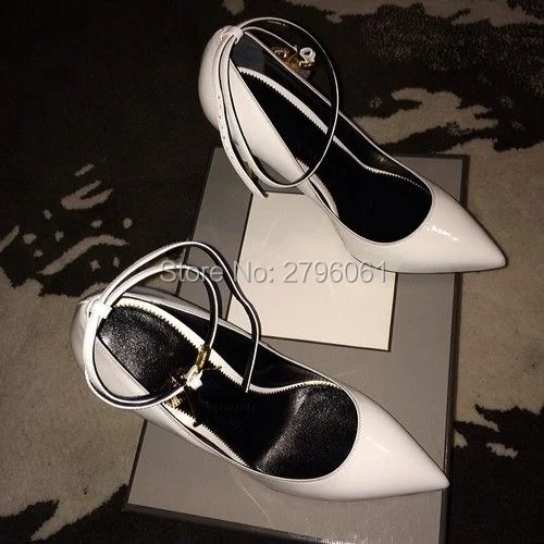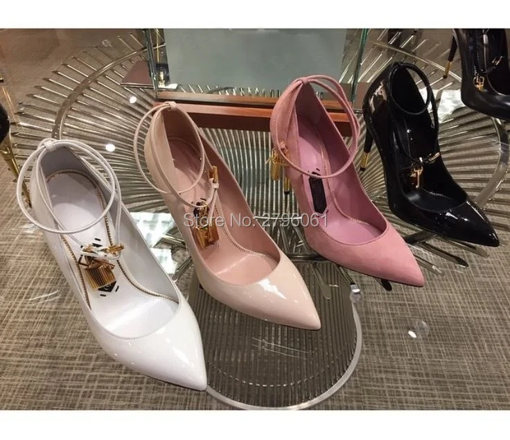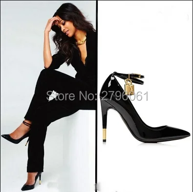 Sexy Pointed Toe Gold Padlock Chain Ankle Strap Ladies High Heels Snakeskin Ladies Dress Shoes Women Patent Leather Pumps