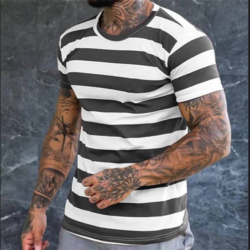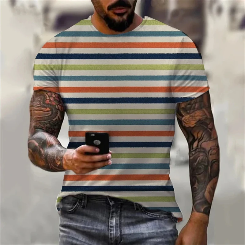 Street Hip Hop Men Women Stripe Print T-Shirt Daily Casual Oversized Sportswear Gym Tops Ropa Hombre Summer Short Sleeve Tees