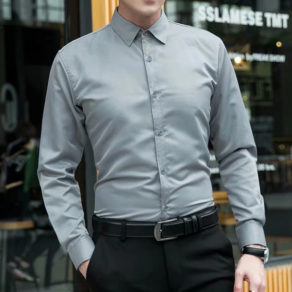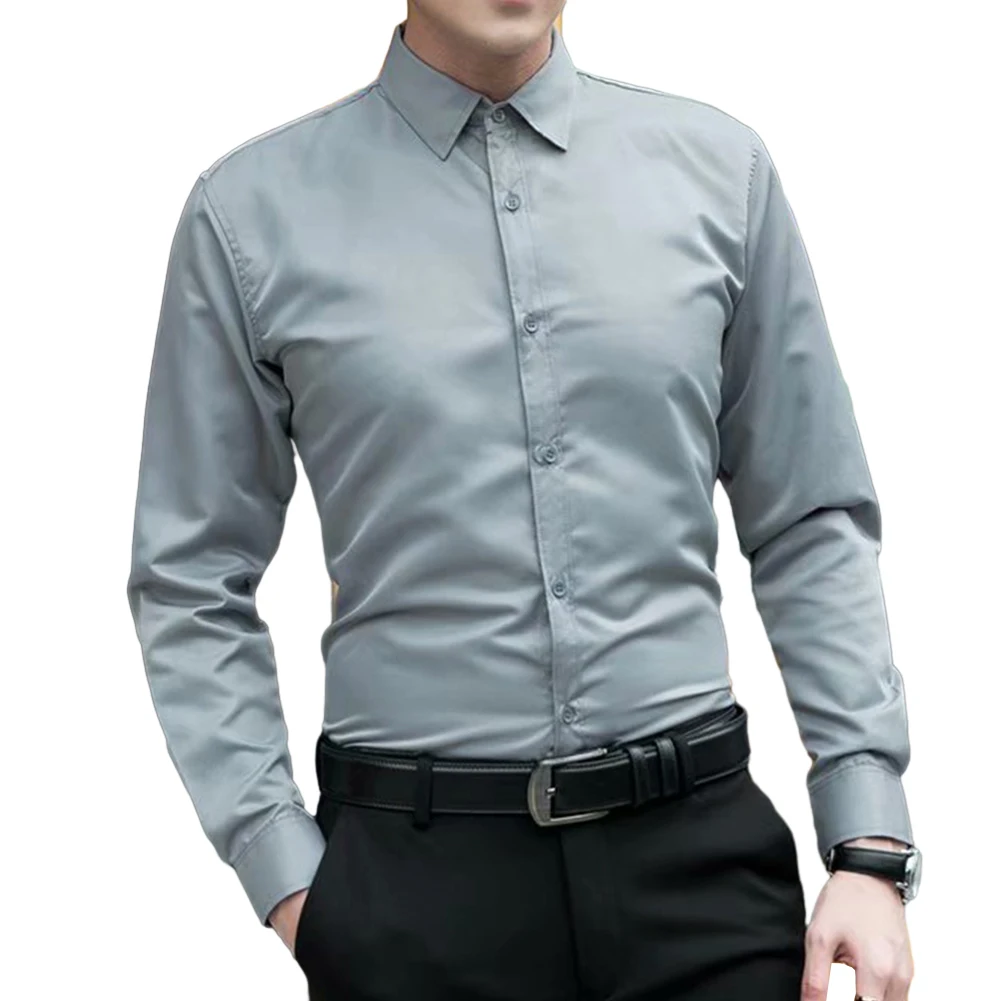 Top Men 's Shirt Button Down Collared Dress Shirt Formal Long Sleeve Polyester Slim Fit Summer Tees All Seasons