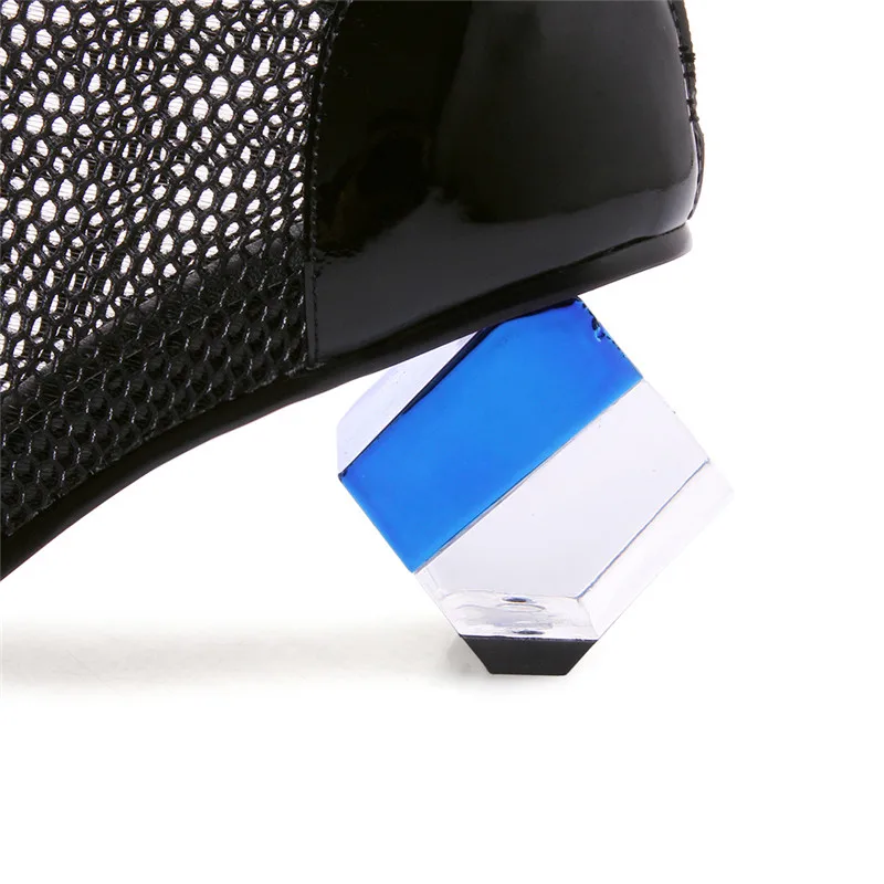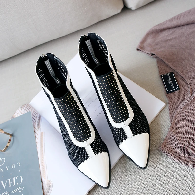 FHC Hollow Out Sandals Boots Woman,High Heels Mesh Shoes,Back Zipper,Bowtie,Pointed Toe,Female Footware,BLACK,Dropship