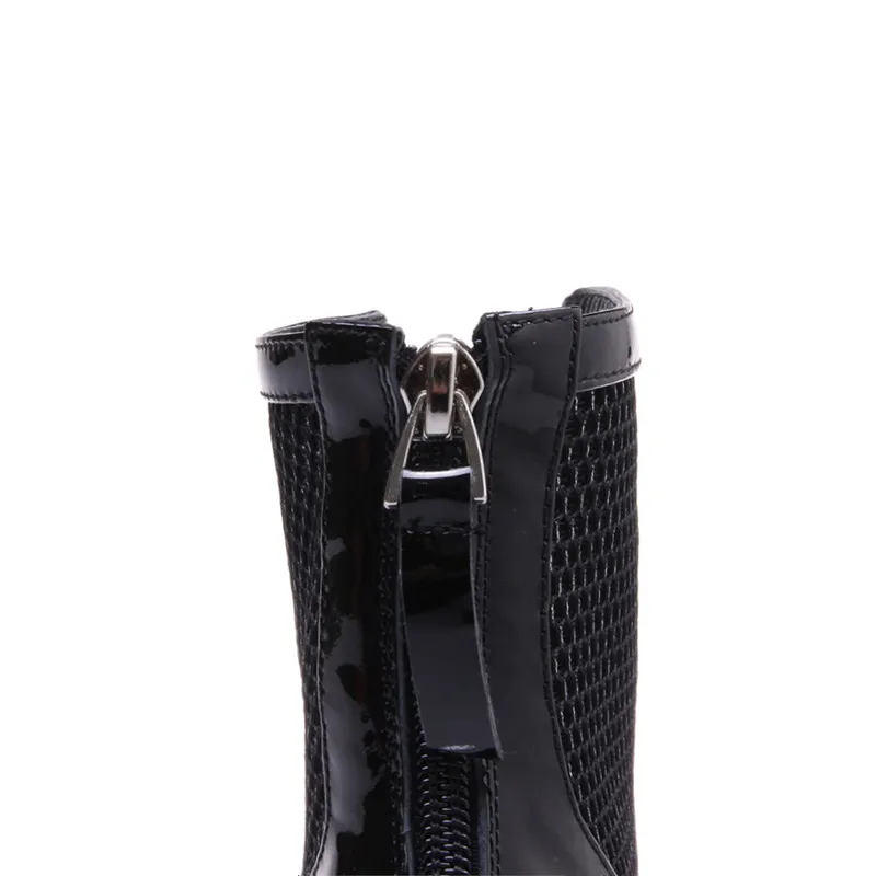 FHC Short Boots Woman High Heels Mesh Platform Shoes,Square Sandals,Hollow Out Botas,Female Footware,BEIGE,Black,Dropship