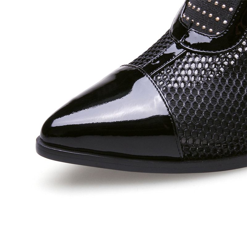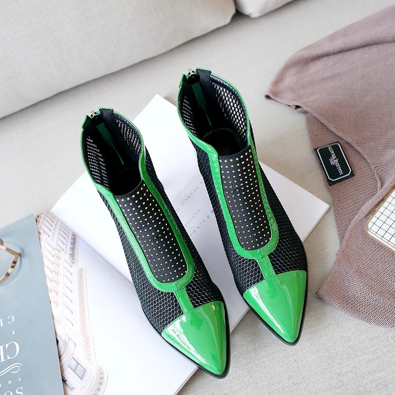 FHC Hollow Out Sandals Boots Woman,High Heels Mesh Shoes,Back Zipper,Bowtie,Pointed Toe,Female Footware,BLACK,Dropship