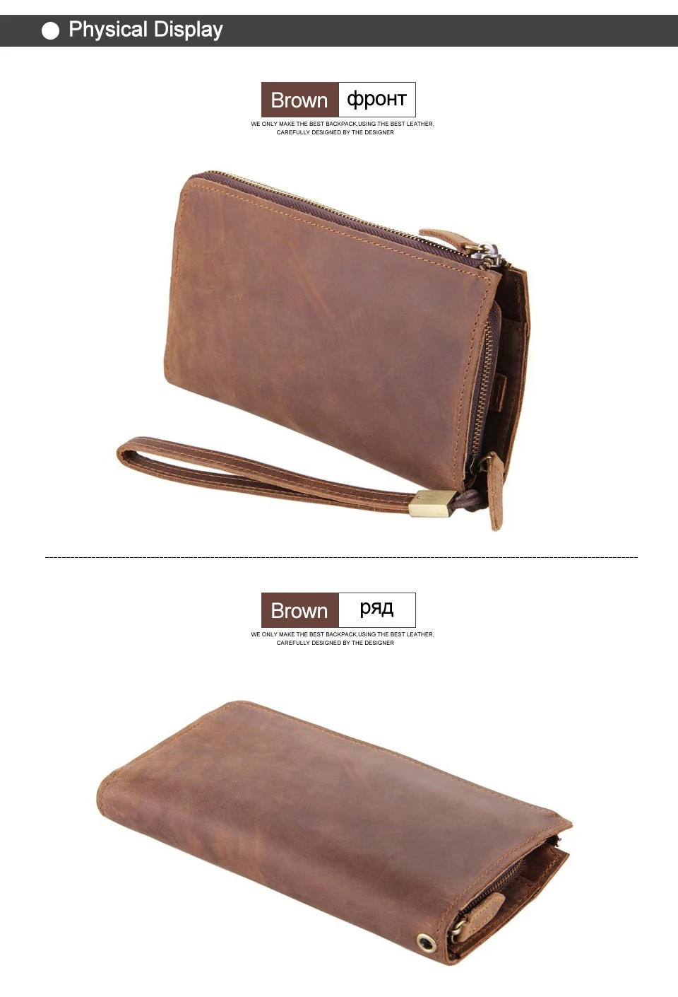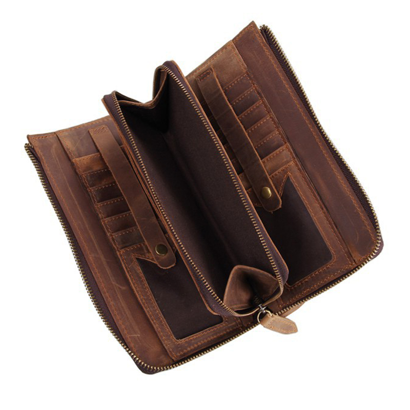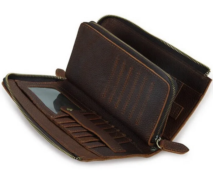 Design:men genuine leather wallet, men's wallet, business brand purse,men's clutch wallet,men small cluth bag Materials:Top quality genuine cowhide leather or crazy horse leather Features:fashion,popular,multifunctional Color:brown(crazy horse cowhide genuine leather) The size may have 1-2cm error since the different measurement ways.
