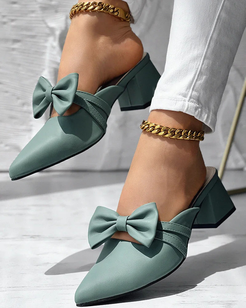 Women's Elegant Urban Shoes 2025 Spring Summer Latest Coarse Heels Pointed High Heels Bow Decor Simple Daily Versatile Shoes